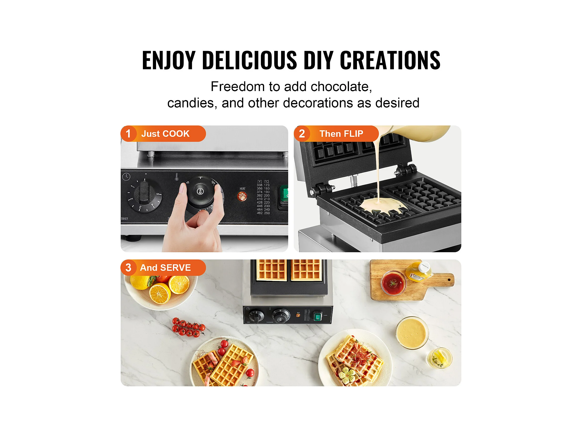 Gaufrier SucceBuy Crêpière Électrique 40.6cm 3400 W à Double Tête Commerciale