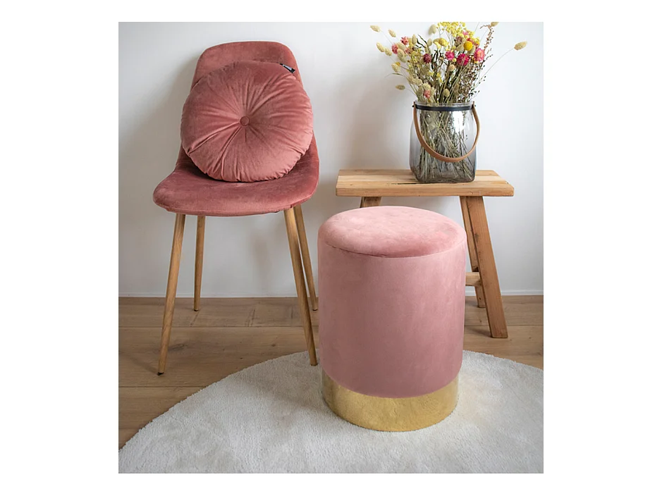 Gavin Tabouret de chevet, rose avec bord en laiton.