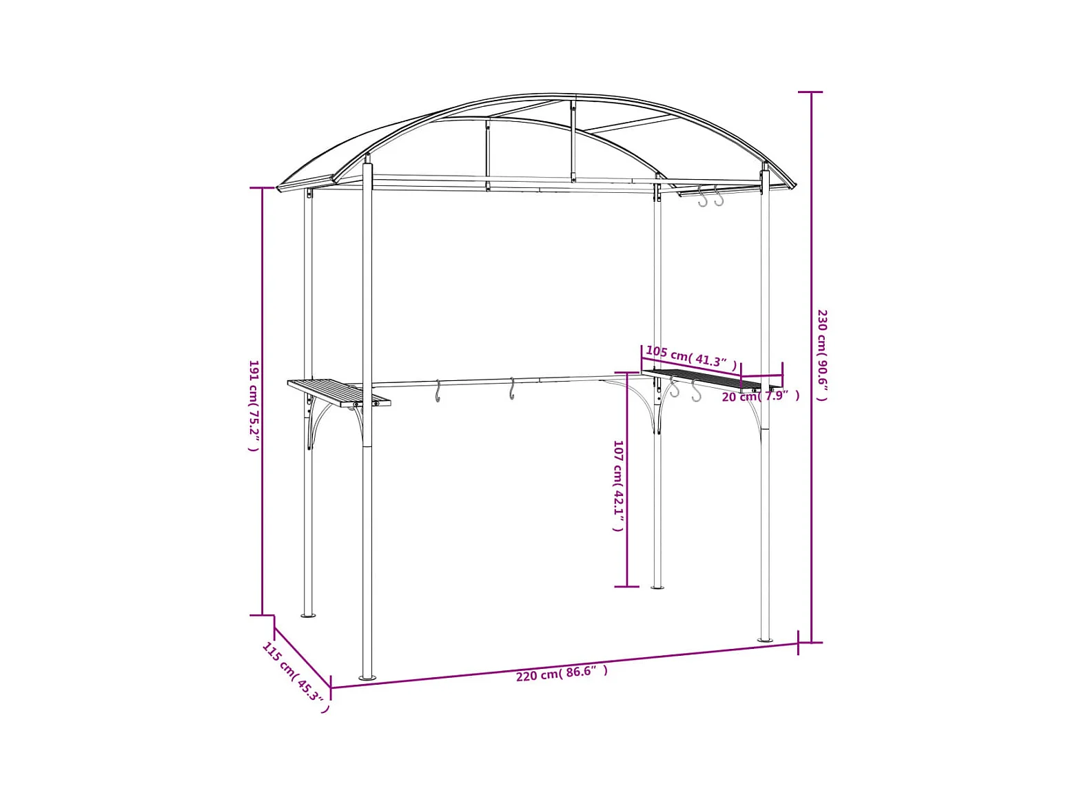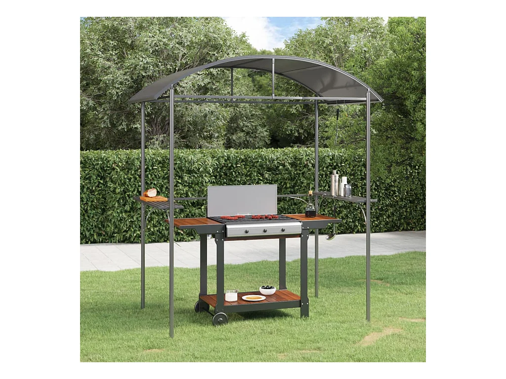 Gazebo BBQ et étagères latérales anthracite 220x115x230cm acier