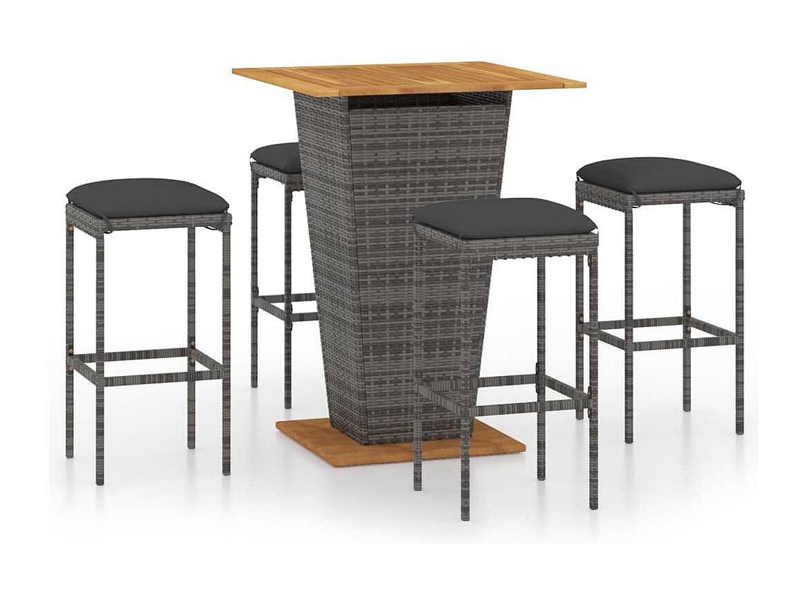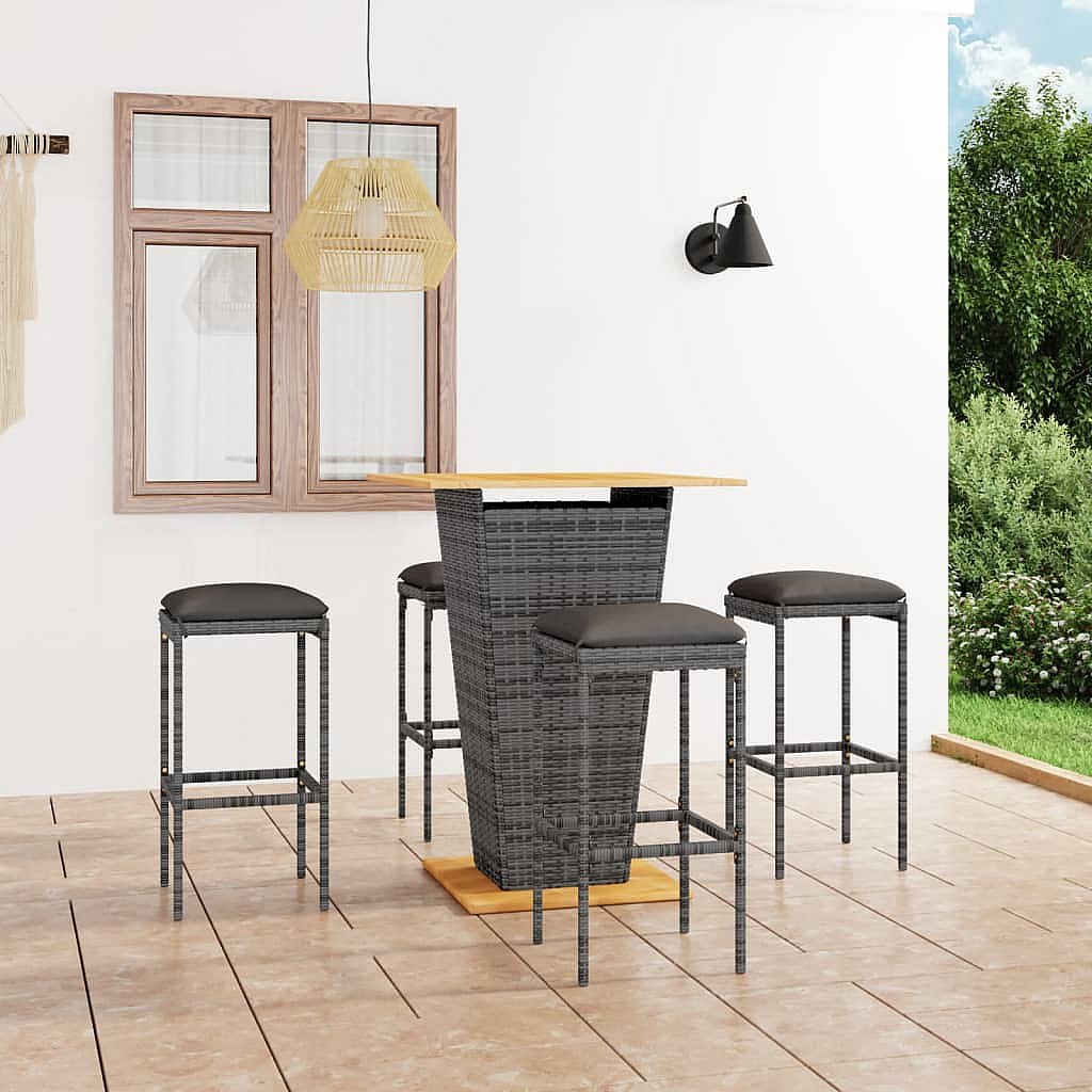 Gela Ensemble de bar de jardin 5 pcs et coussins Résine tressée Gris