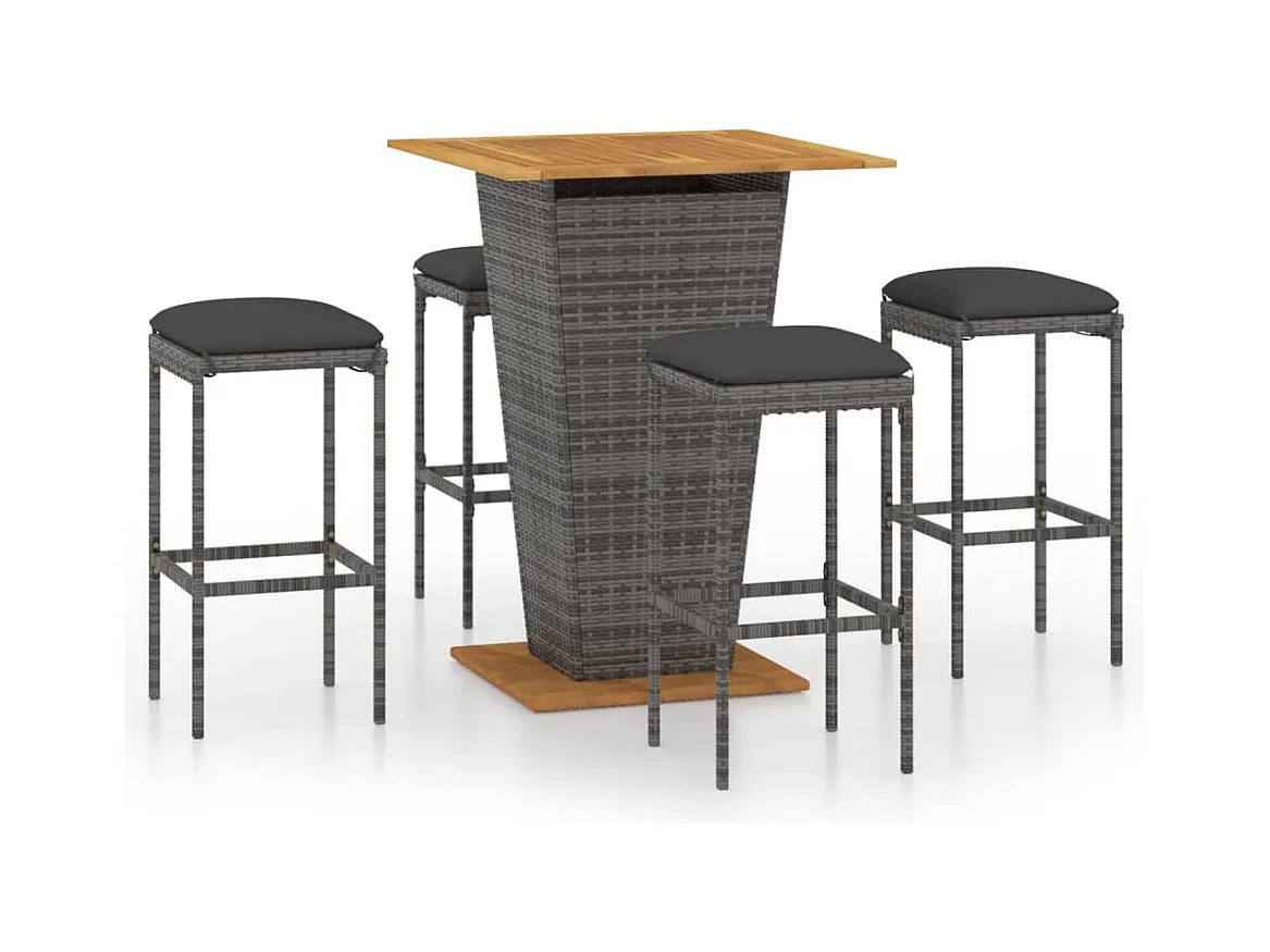 Arvind Ensemble de bar jardin 5 pcs gris poly rotin/bois massif acacia