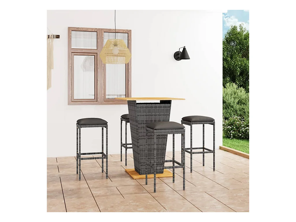 Pierre-Guillaume Ensemble de bar jardin 5 pcs gris poly rotin/bois massif acacia
