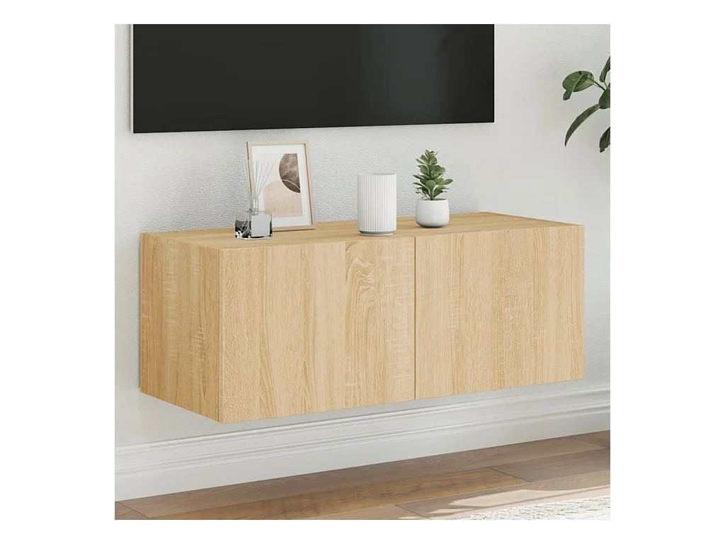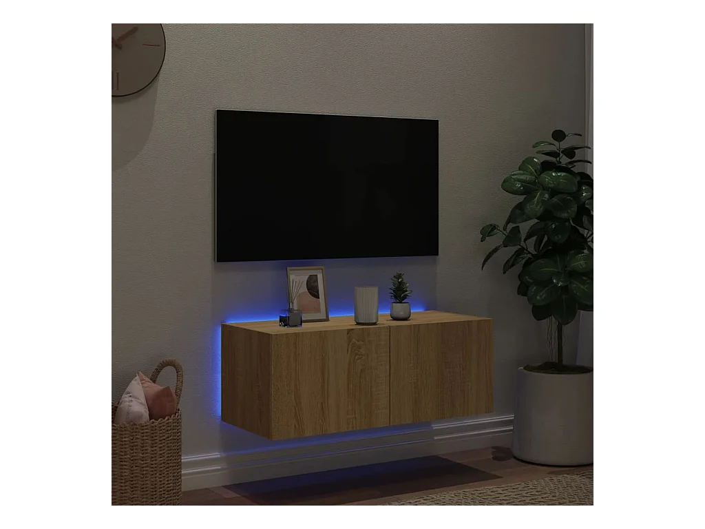 Gerben Meuble TV mural avec lumières LED chêne sonoma 80x35x31 cm