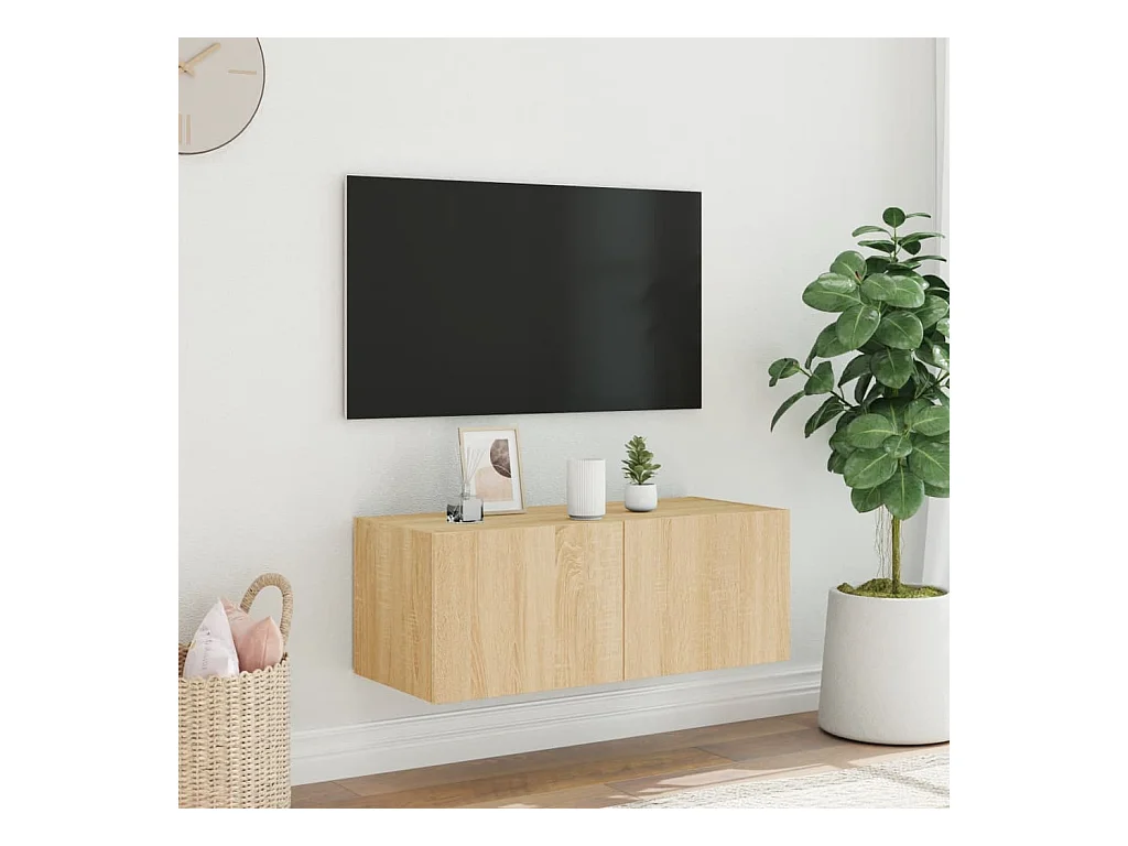 Gerben Meuble TV mural avec lumières LED chêne sonoma 100x35x31 cm