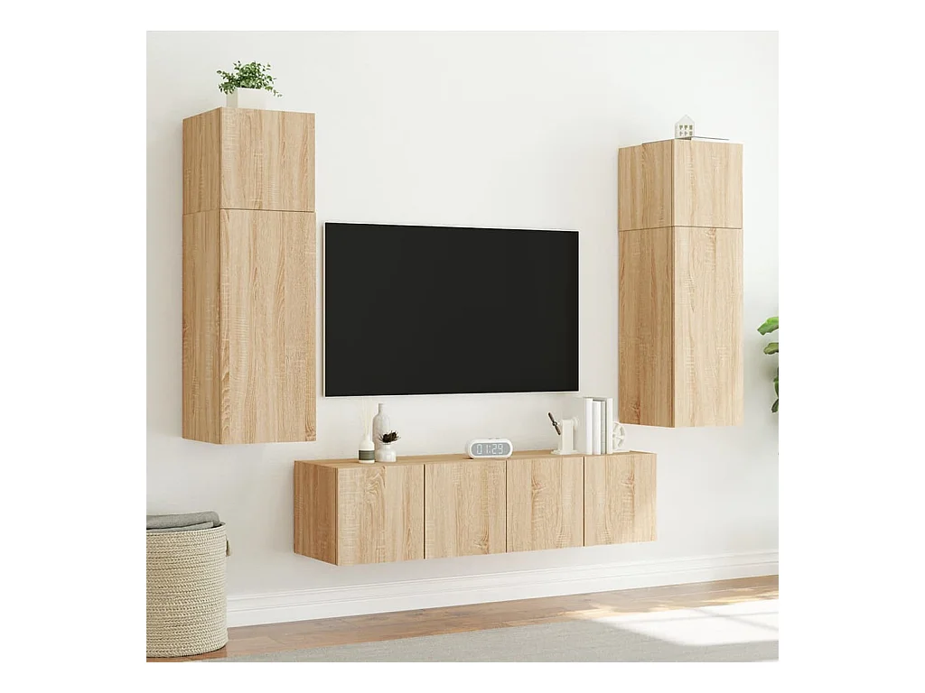 Gerben Meuble TV mural avec lumières LED chêne sonoma 40,5x35x80 cm