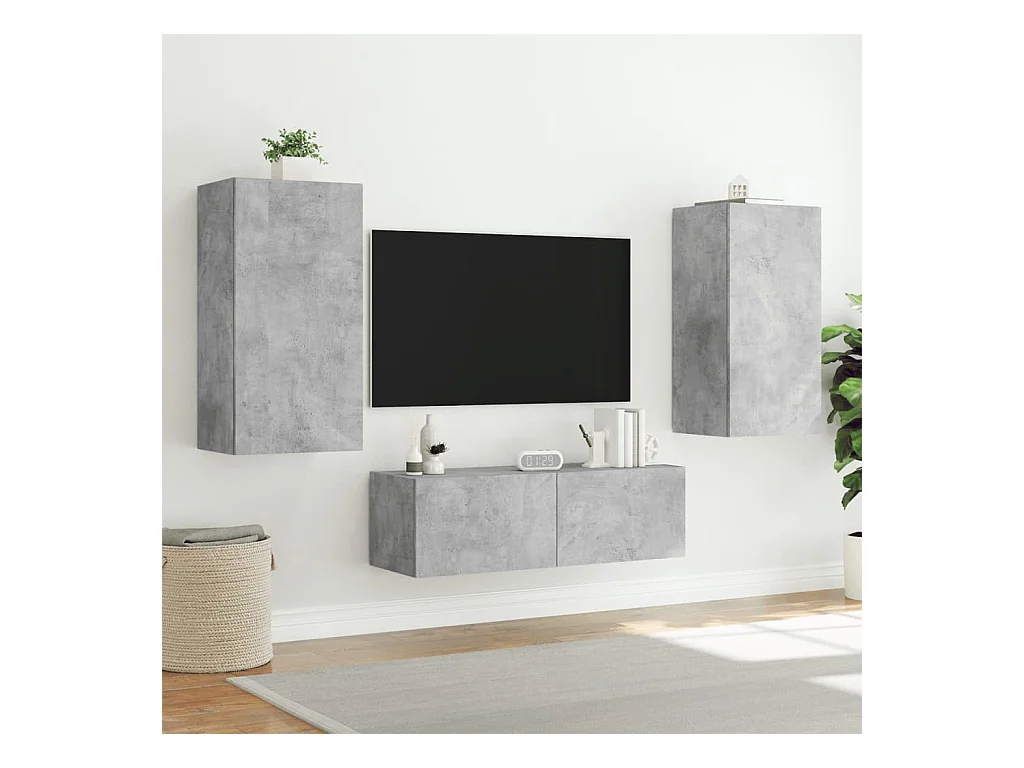 Gerben Meuble TV mural avec lumières LED gris béton 40,5x35x80 cm