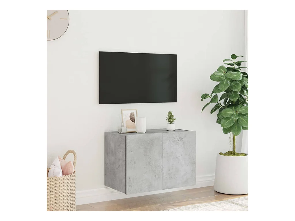 DuBois Meuble TV mural avec lumières LED gris béton 78,5x30x60,5 cm