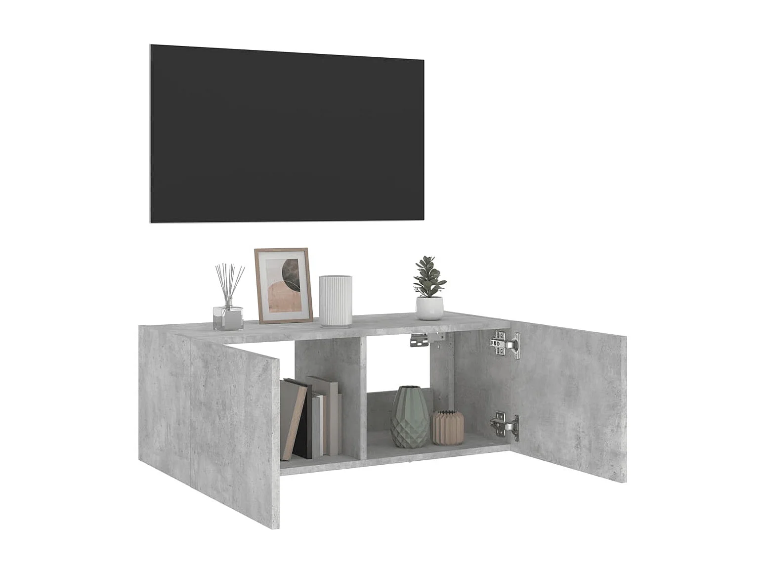 Gerben Meuble TV mural avec lumières LED gris béton 100x35x31 cm
