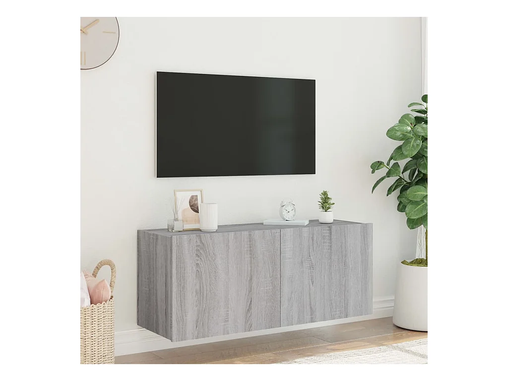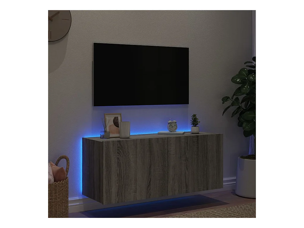 Gerben Meuble TV mural avec lumières LED sonoma gris 100x35x41 cm