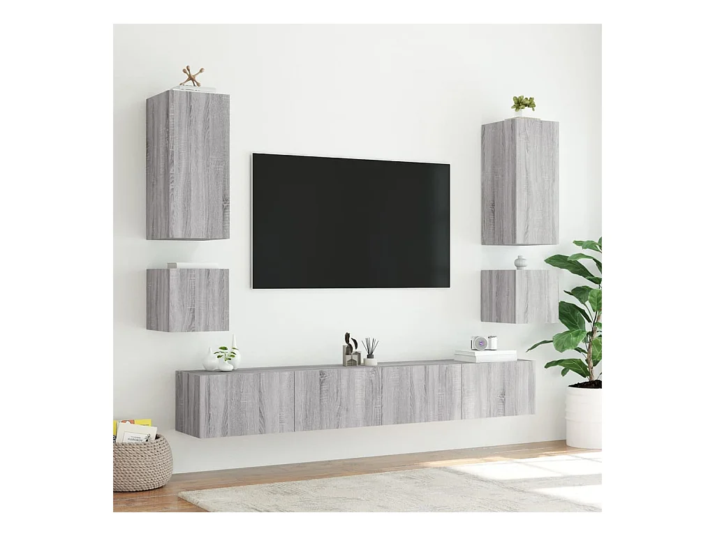 Gerben Meuble TV mural avec lumières LED sonoma gris 80x35x41 cm