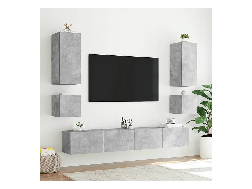Gerben Meuble TV mural avec lumières LED gris béton 100x35x41 cm