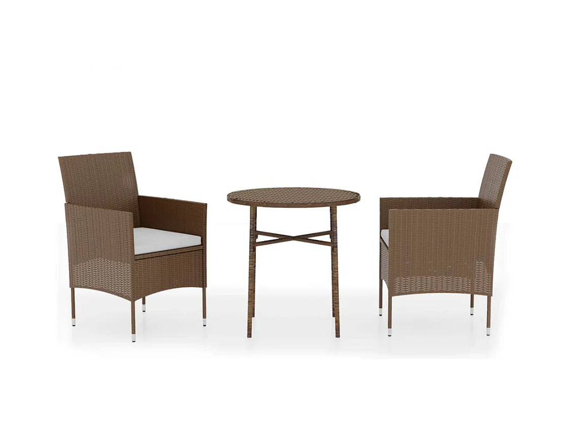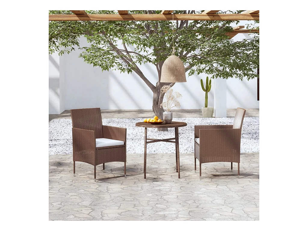 Germain Ensemble à manger de jardin 3pcs Résine tressée Marron