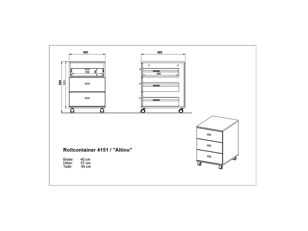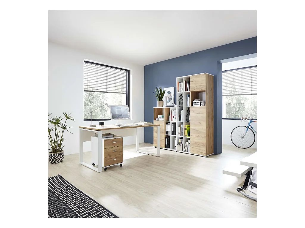 Classeur à roulettes 40x48,9x56,9cm Chêne de Navarre et blanc