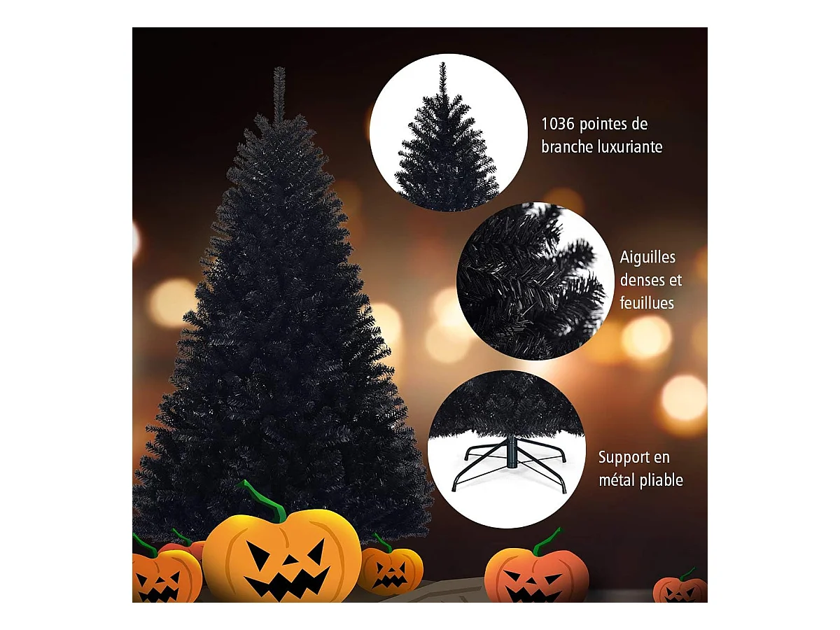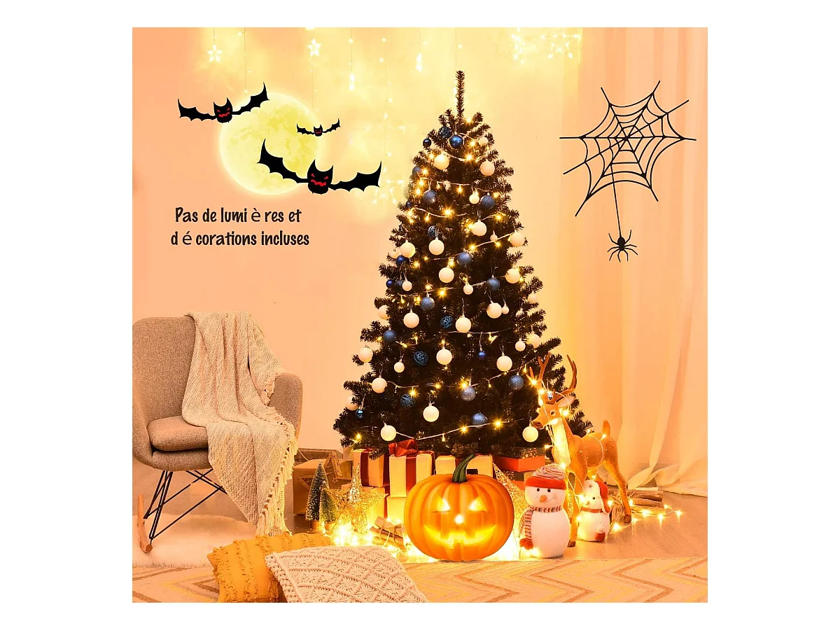 Arbre de Noël artificiel pré-éclairé et boules noir 150 cm PVC