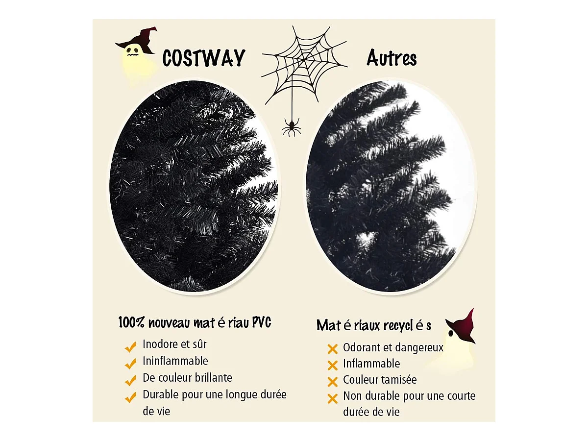 Sapin de Noël artificiel escamotable noir 180 cm PET