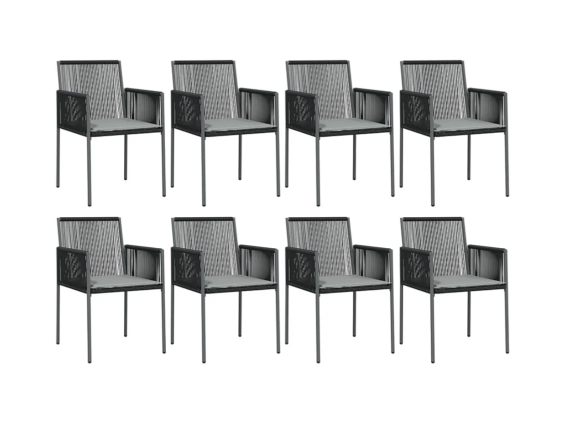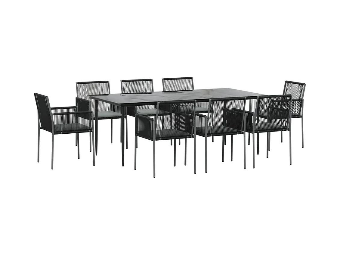 Giovanni Carlo Ensemble à manger de jardin 9 pcs coussins noir rotin et acier