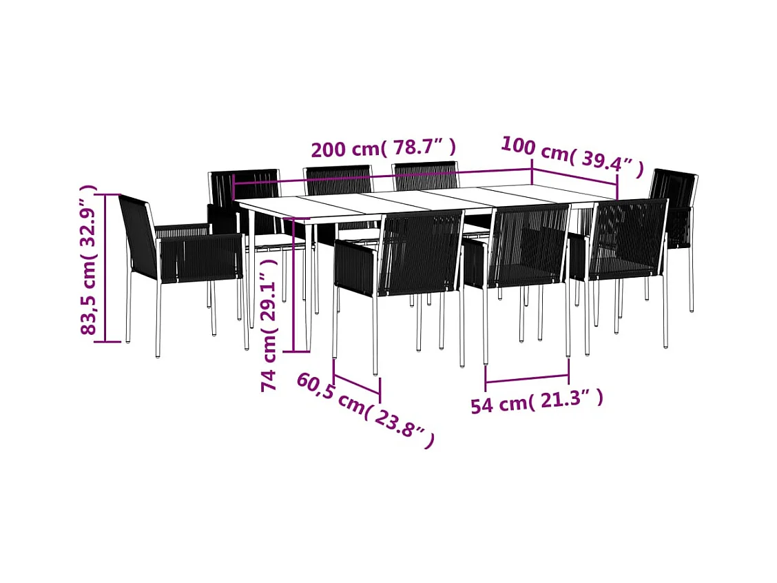 Wenlin Ensemble à manger de jardin 9 pcs Noir