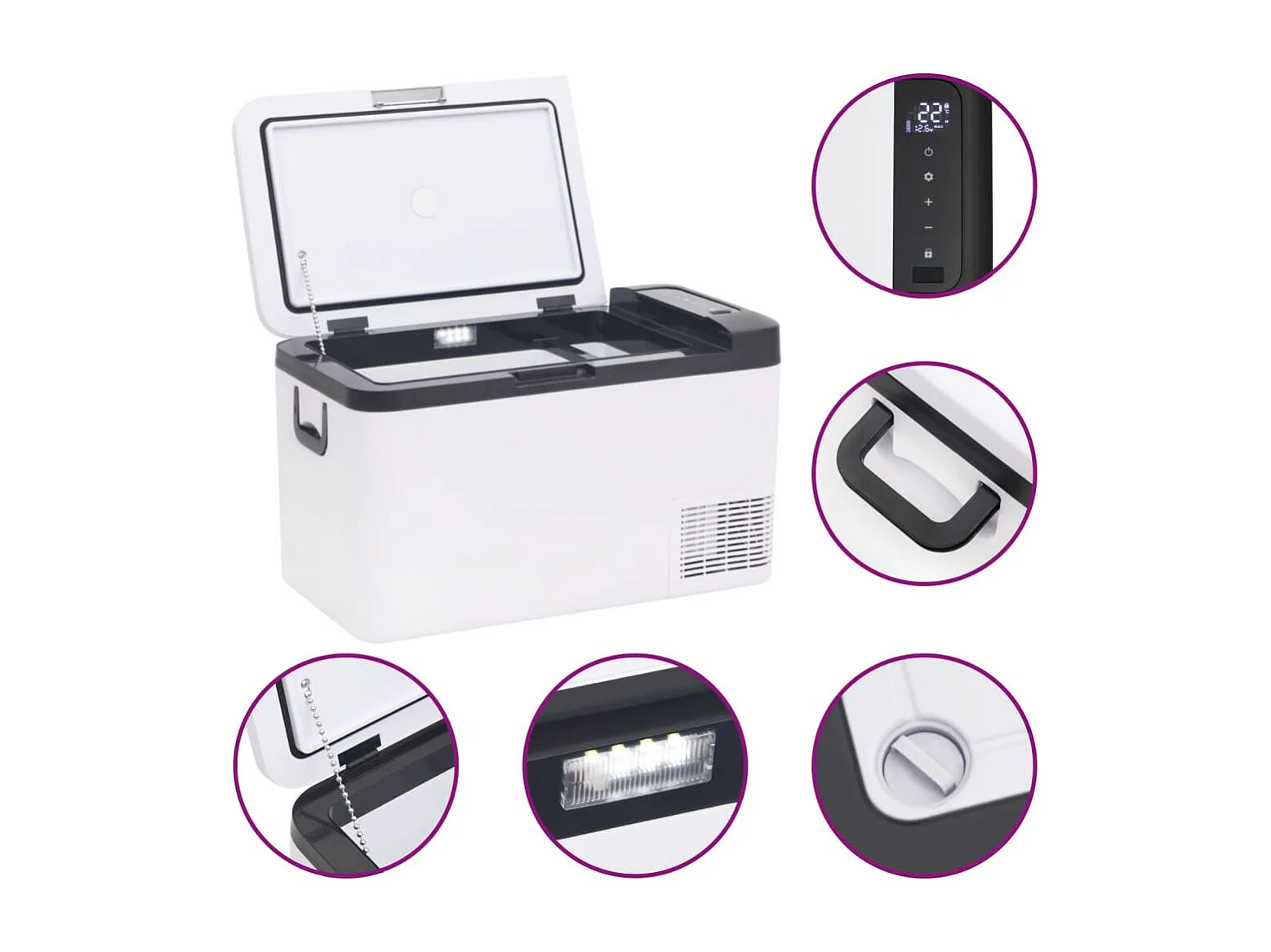 Glacière avec poignée et adaptateur noir et blanc 18 L PP et PE