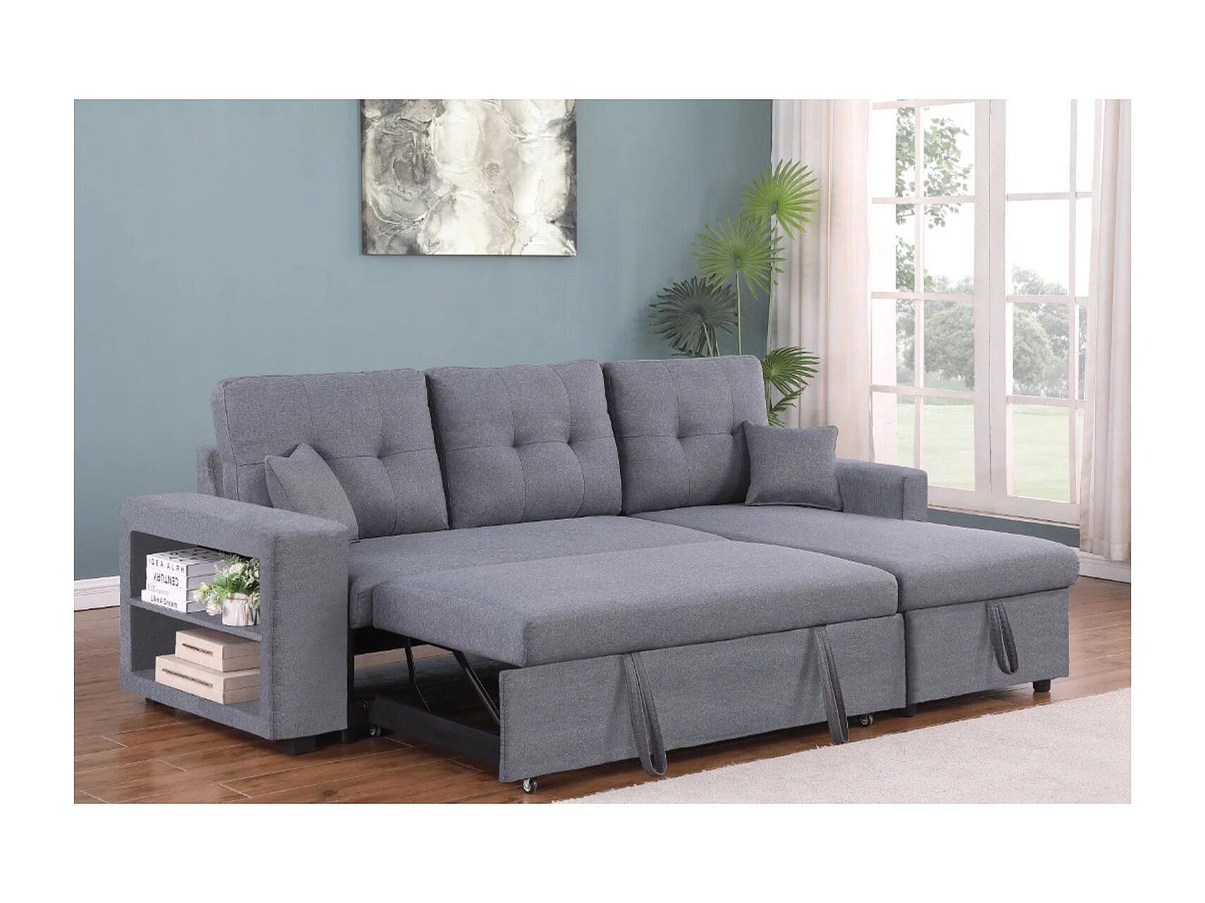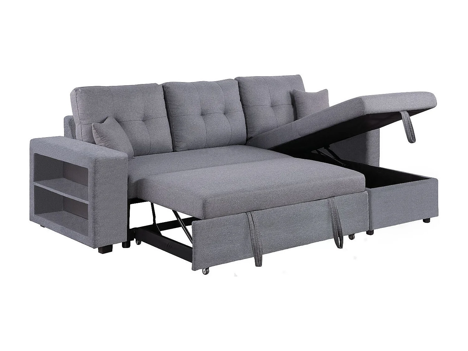 Canapé d'angle droit convertible en tissu gris 4 places GLASGOW
