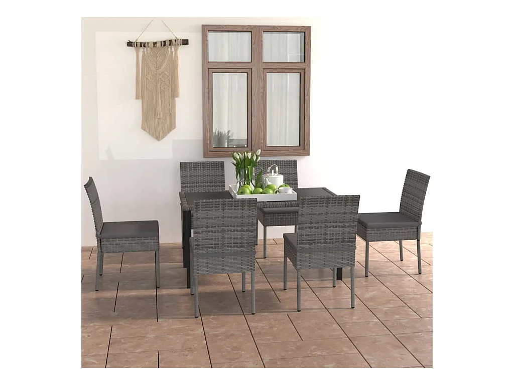 Garden Furniture - Ensemble à manger d'extérieur 7pcs coussins Résine tressée Gris