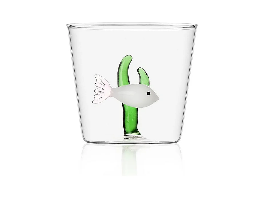 Gobelet en verre borosilicate, Poisson et Algue, blanc/vert 350 ml, Marine Garden