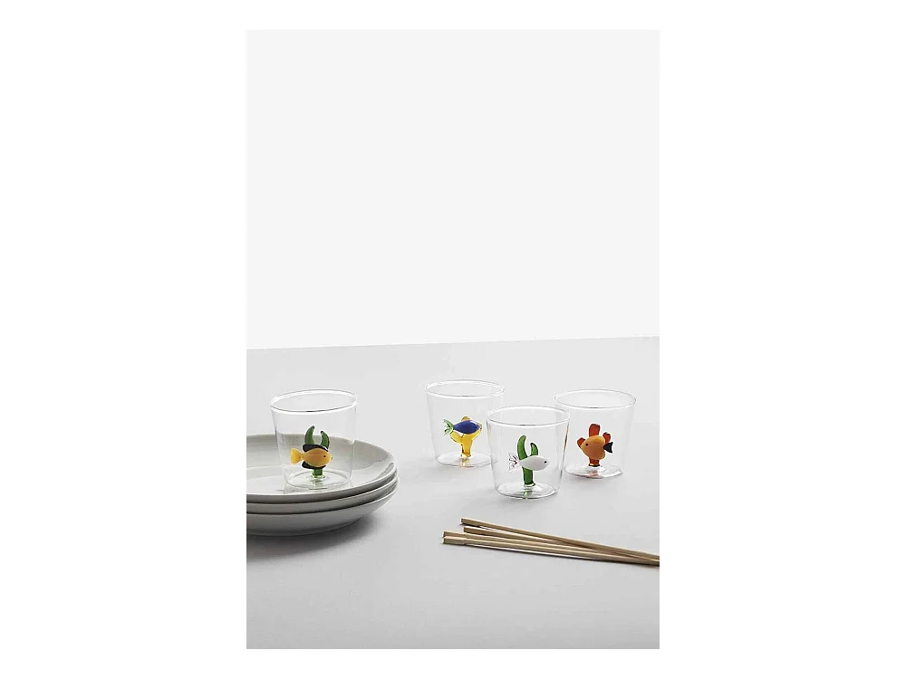 Gobelet en verre borosilicate, Poisson, bleu clair/jaune 350 ml, Animal Farm