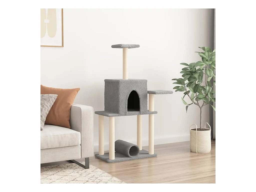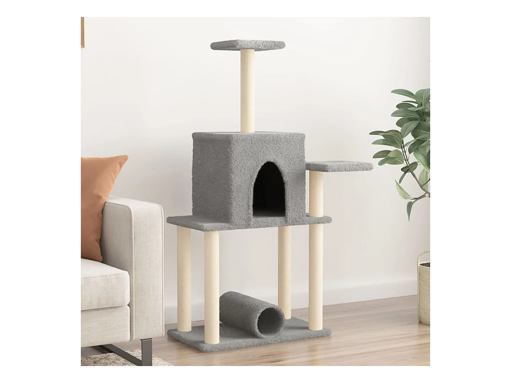 Gokberk Arbre à chat avec griffoirs en sisal gris clair 122 cm