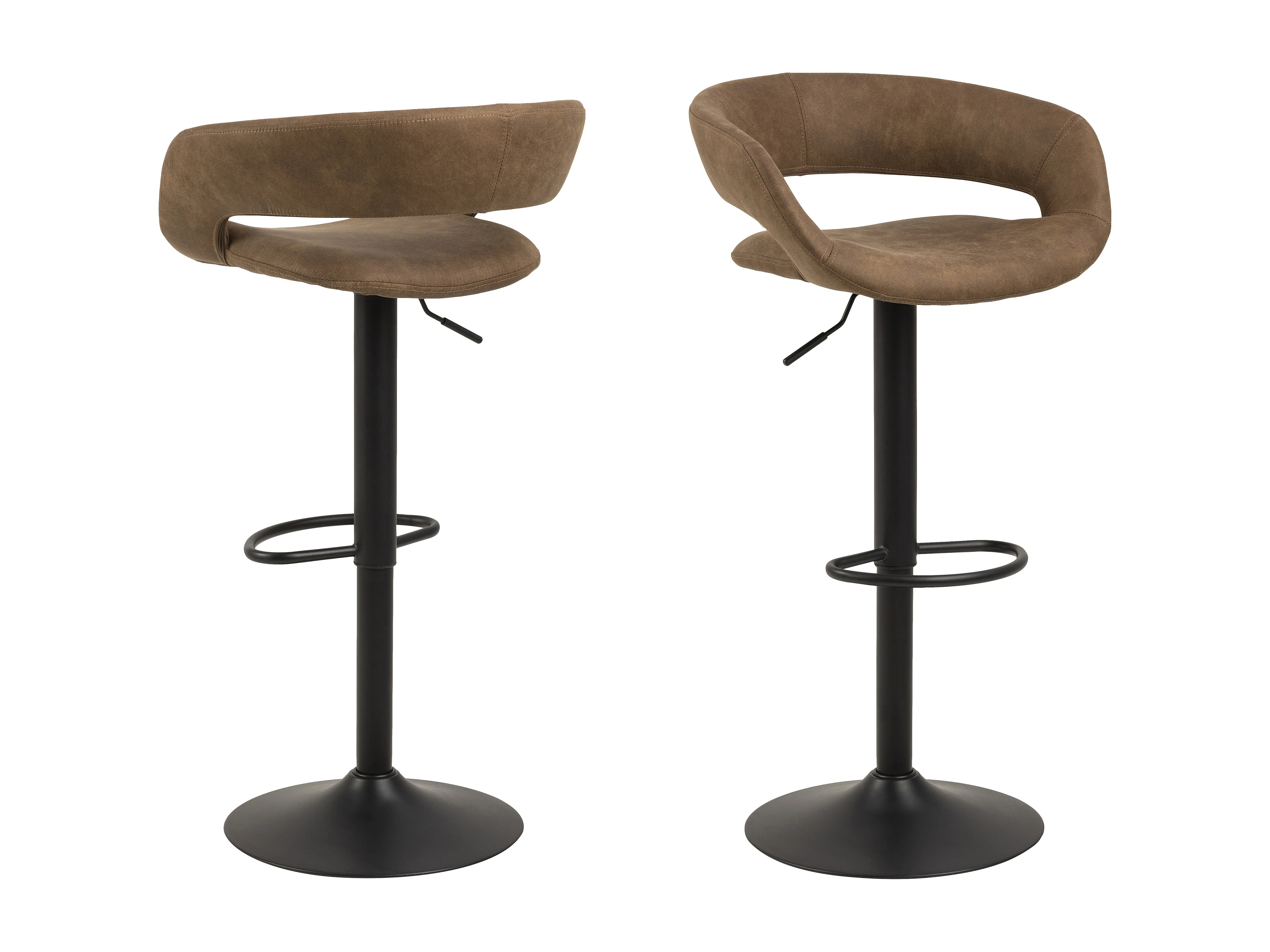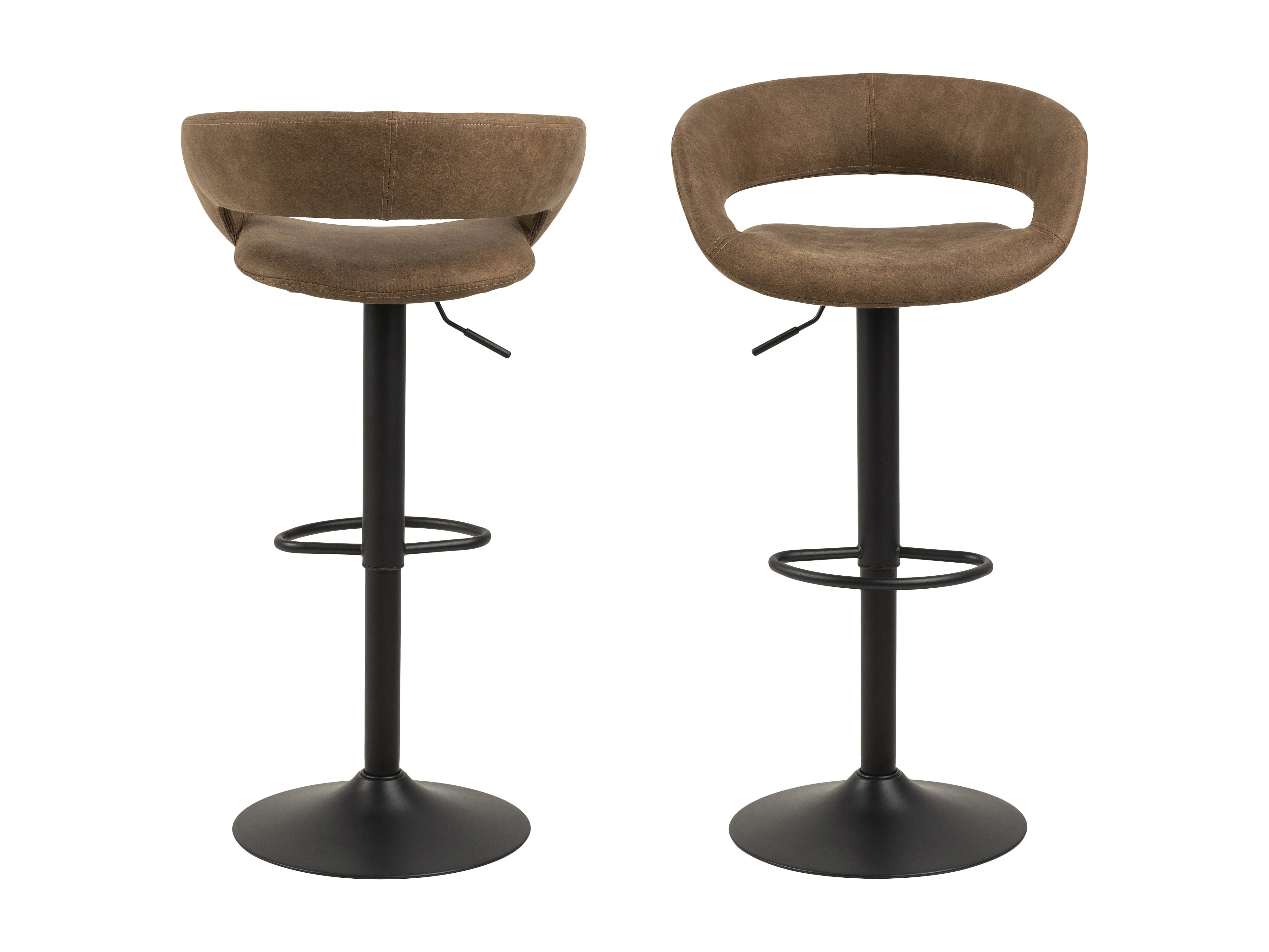 2 Chaises de bar avec dossier, repose-pieds, pivotantes, tissu chenille, structure en métal, marron (42x47x105 cm)