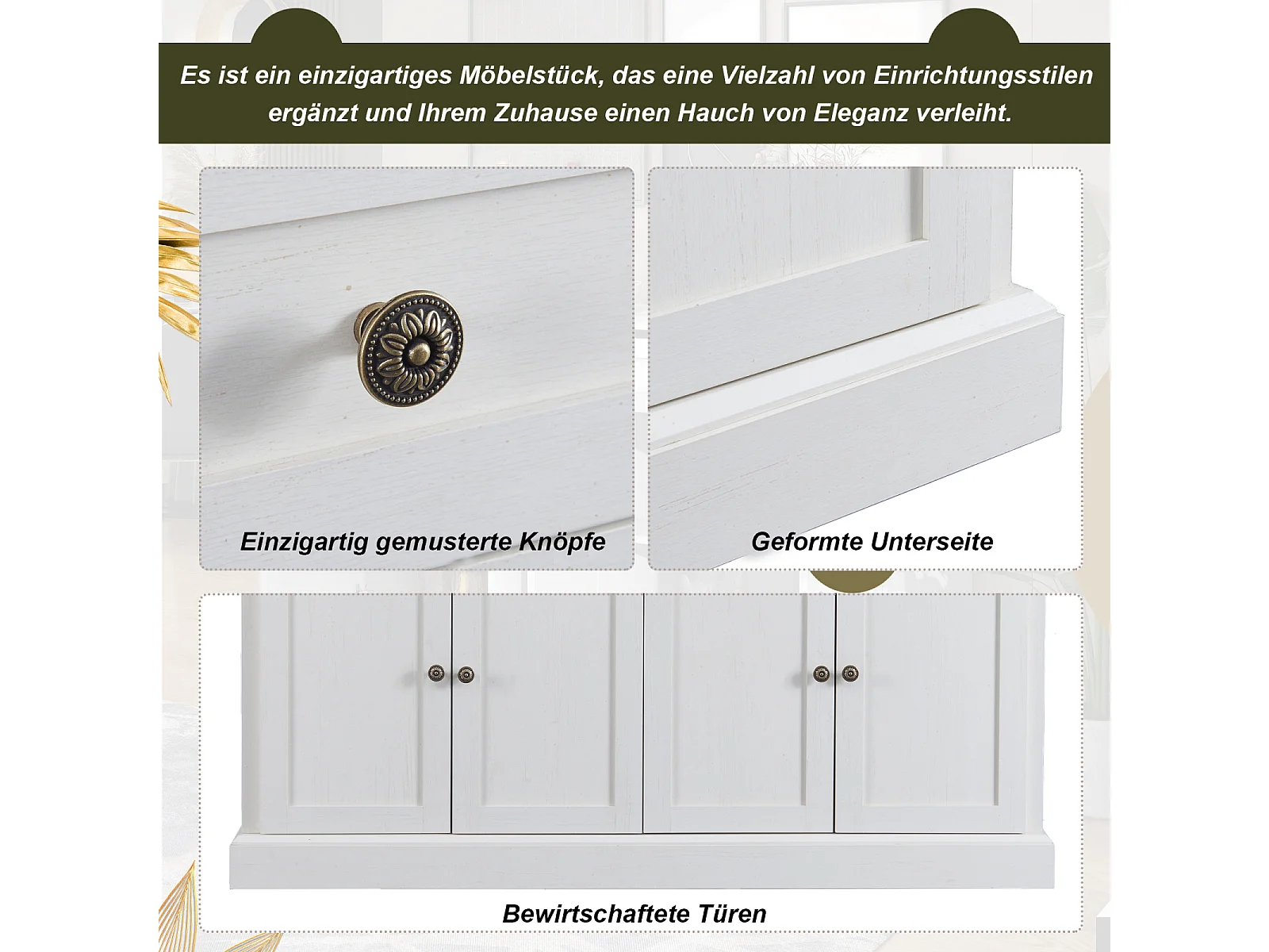 Grand buffet 150 x 40 x 86 cm – 4 portes, panneaux de particules,2 tiroirs – Buffet moderne pour salle à manger et salon – Blanc antique