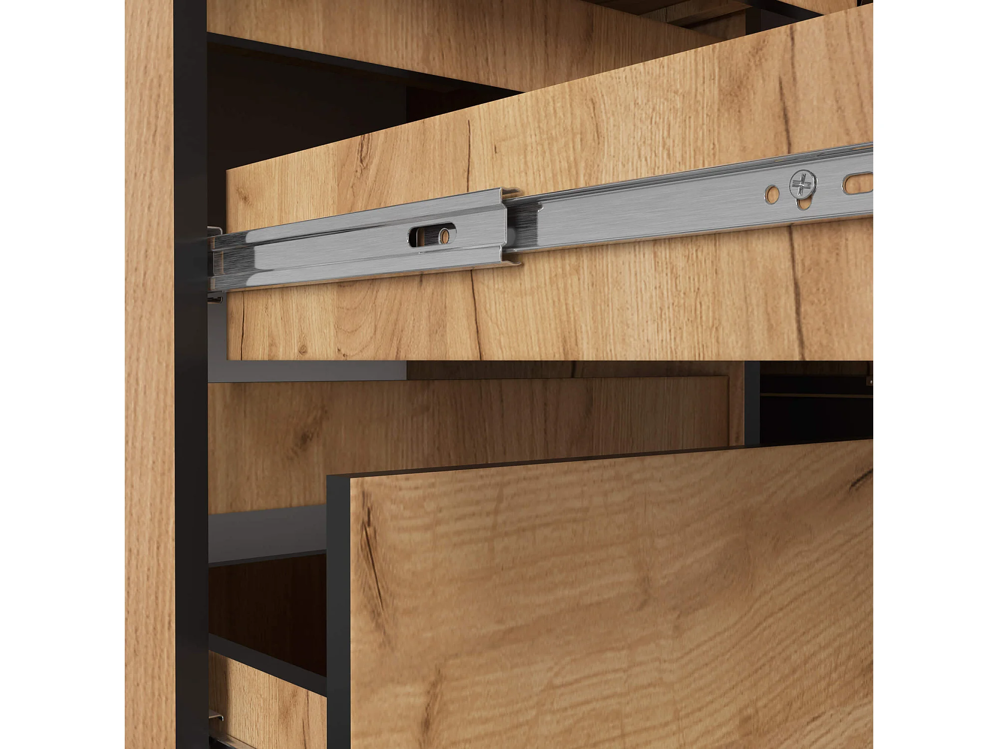Grand bureau d'angle AKORD gauche B20 Chêne Craft 155 cm 1 porte 3 tiroirs façade Chêne Craft 4 étagères 155x85x77 cm