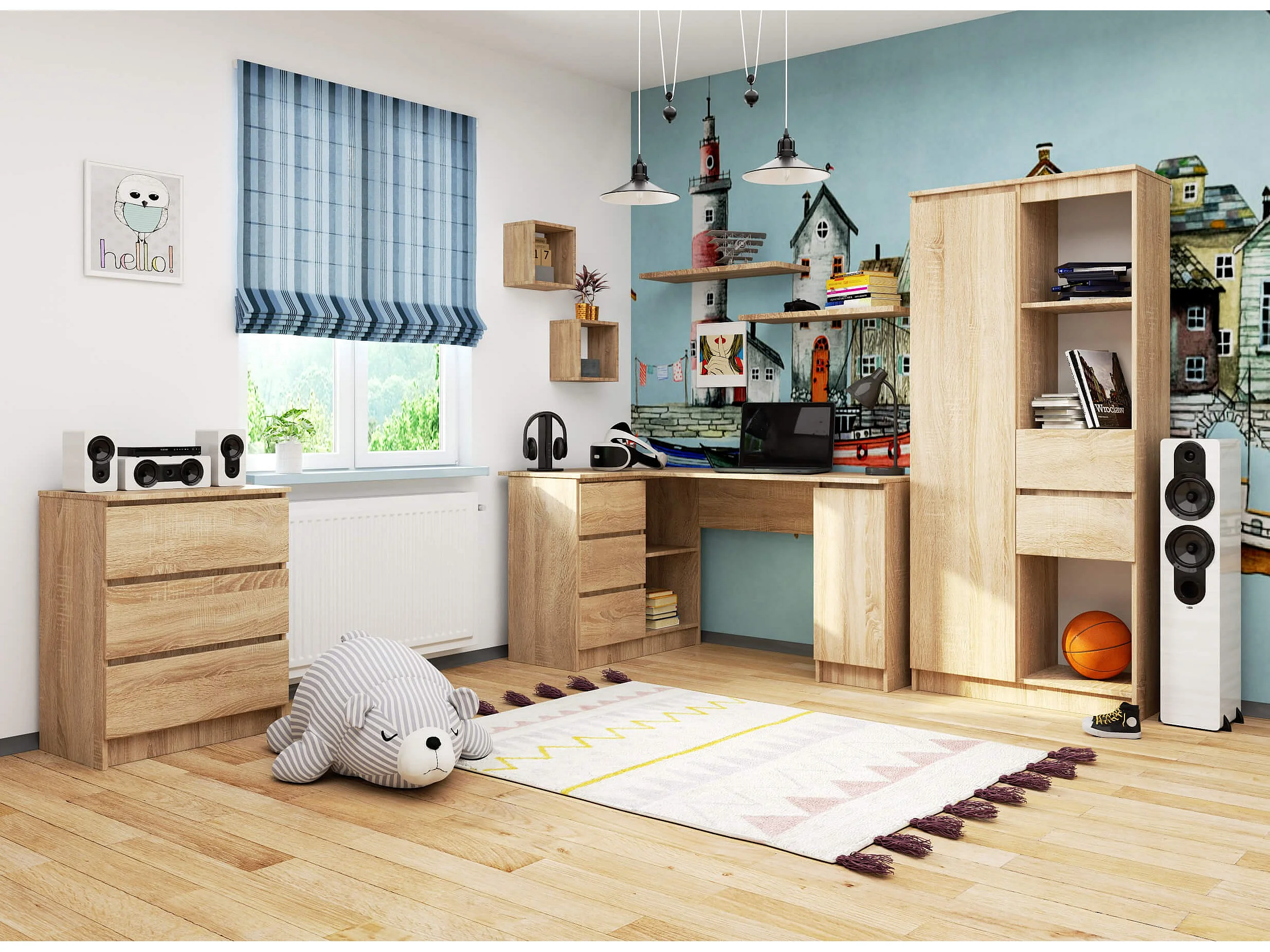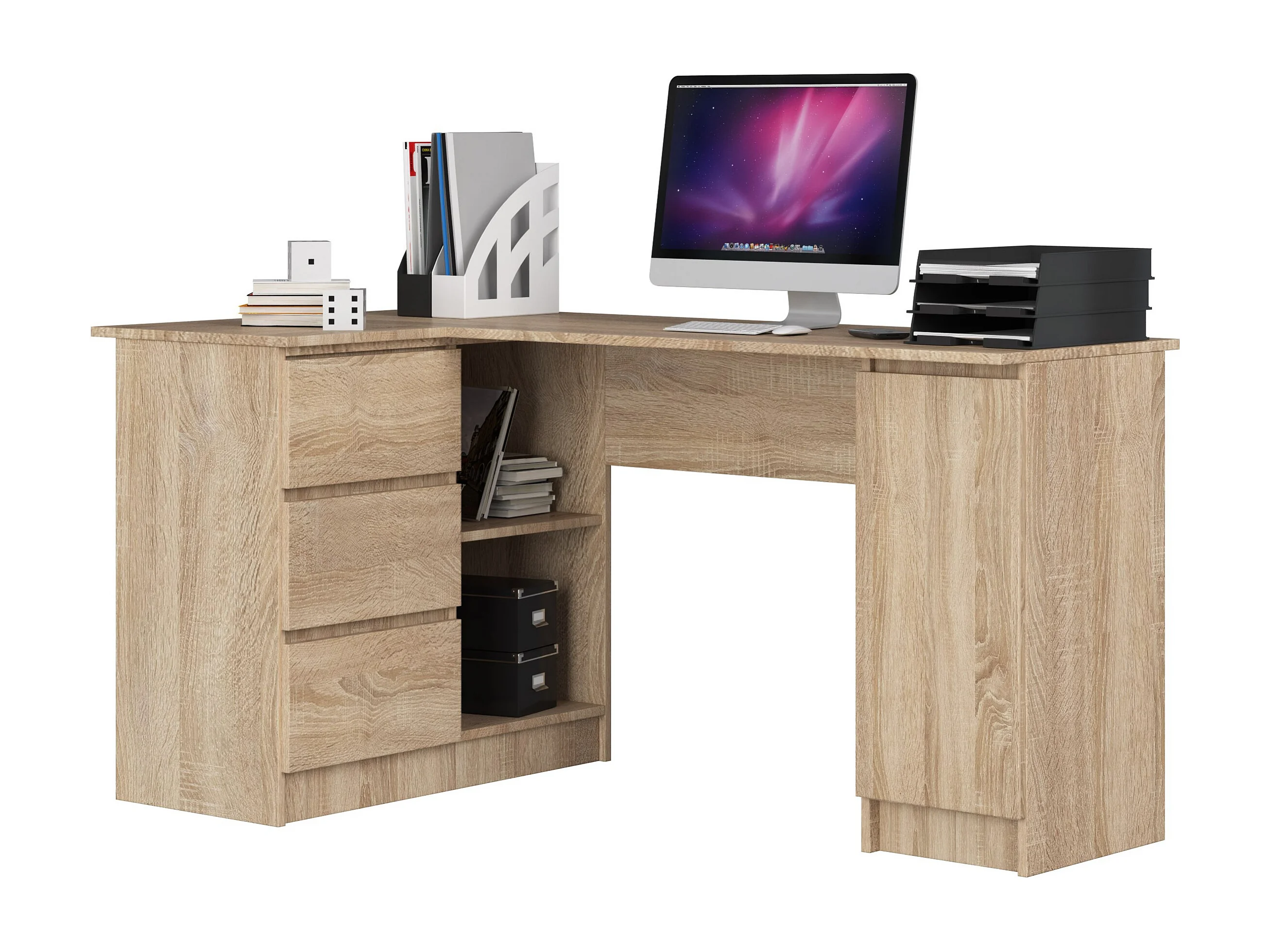 Grand bureau d'angle AKORD gauche B20 Chêne Sonoma 155 cm 1 porte 3 tiroirs façade Chêne Sonoma 4 étagères 155x85x77 cm