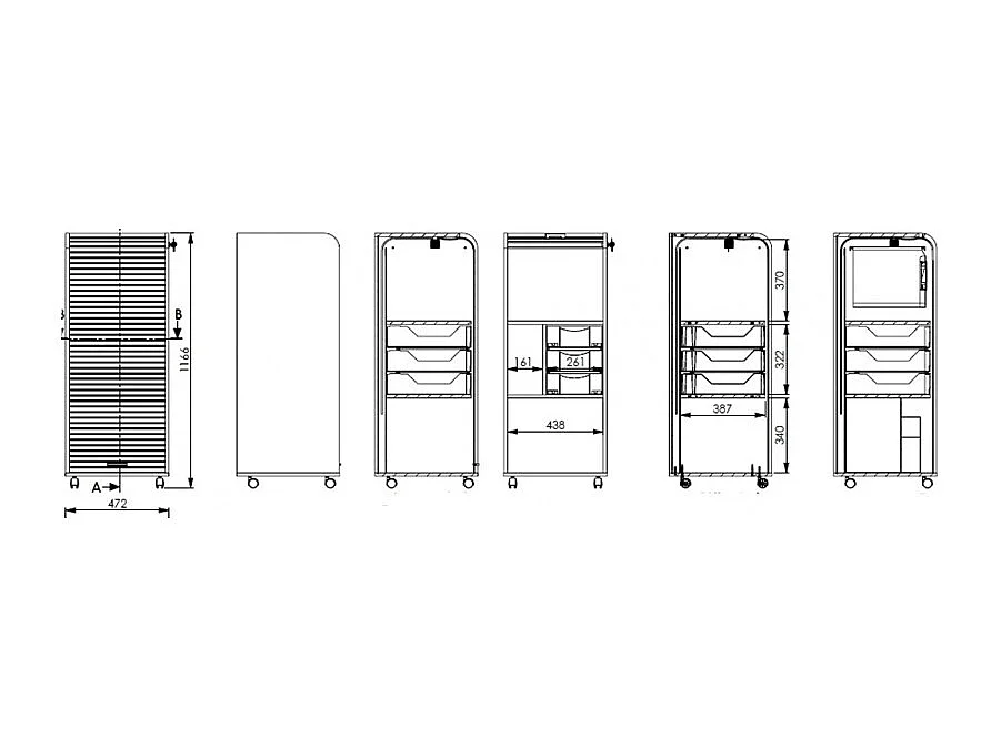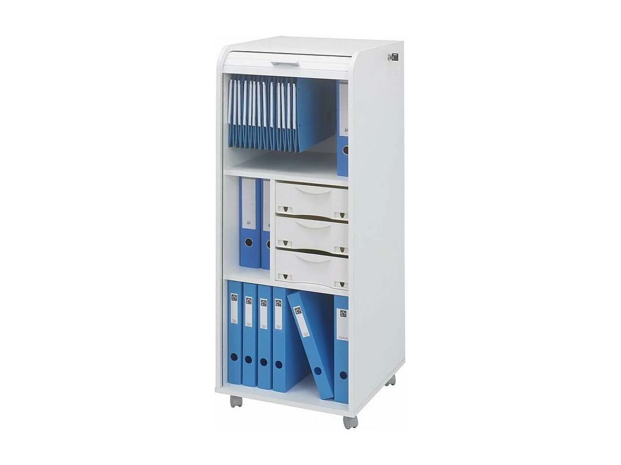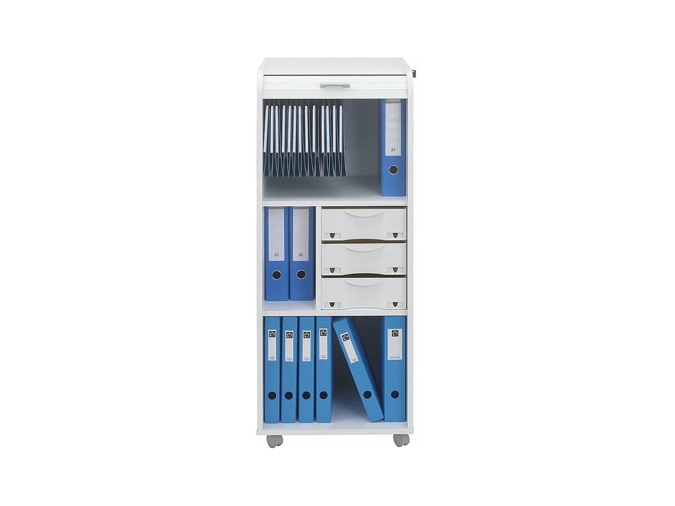 Grand caisson à rideau sur roulettes 3 tiroirs blanc imprimé Mont Cervin Orga 108cm