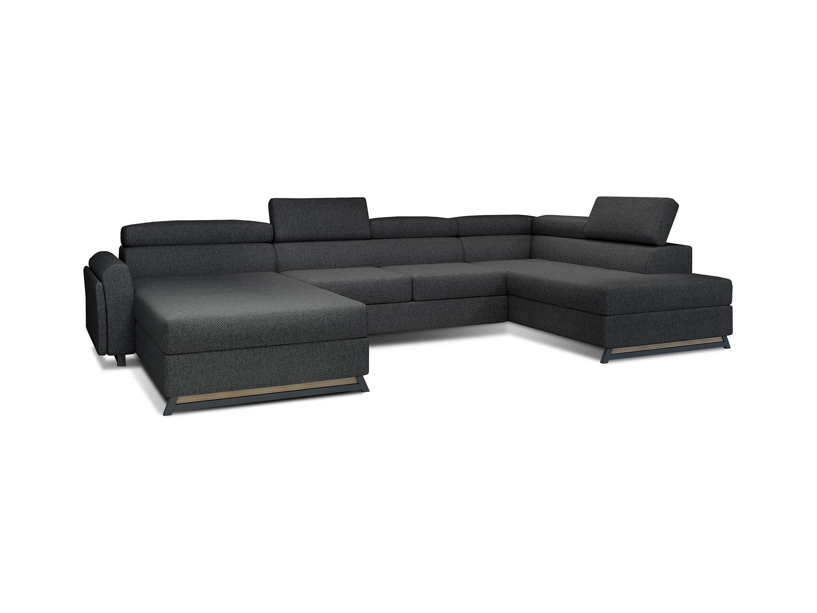 Grand canapé panoramique convertible tissu anthracite avec coffre Konba 370cm-Coffre de rangement à gauche