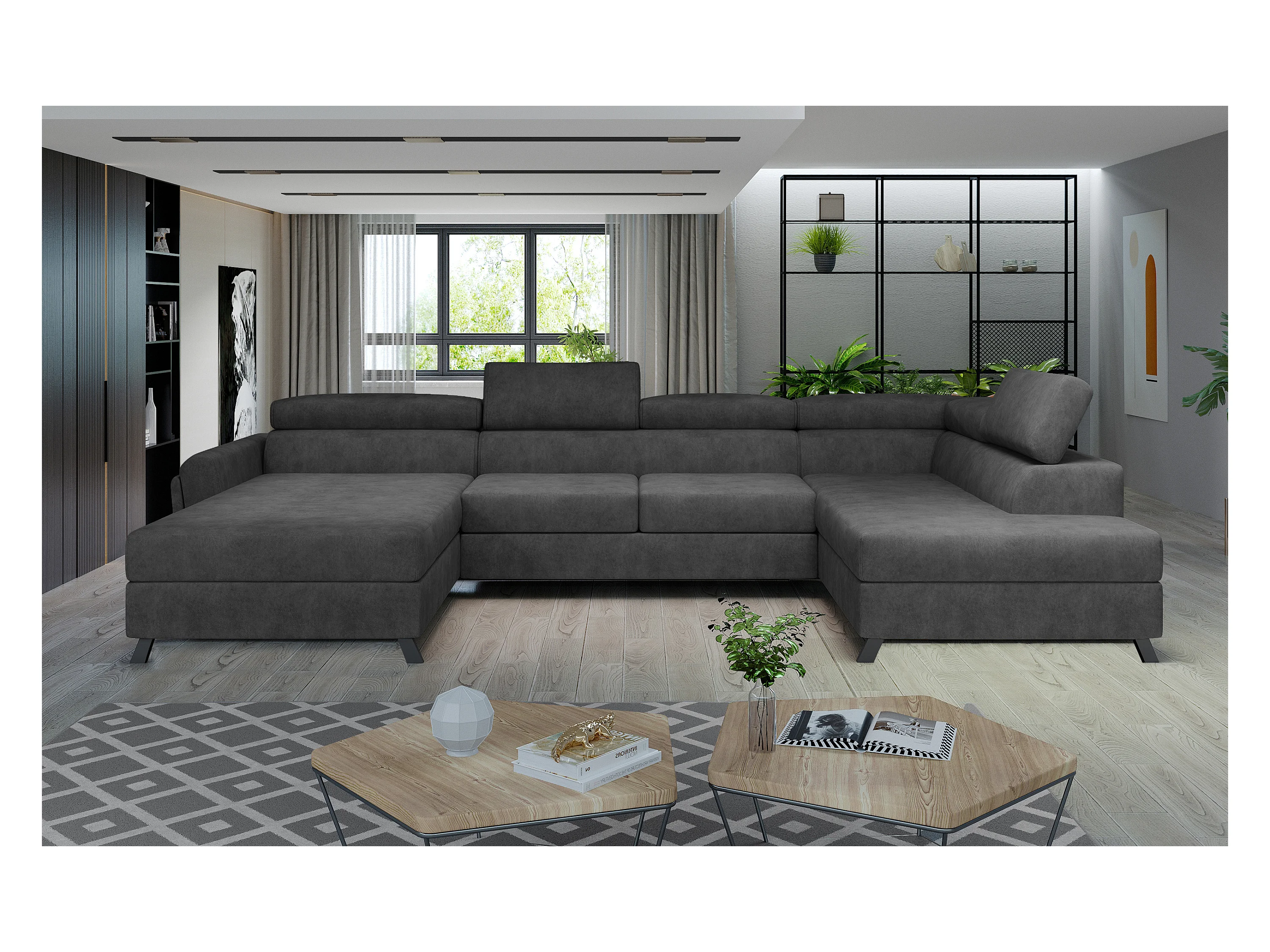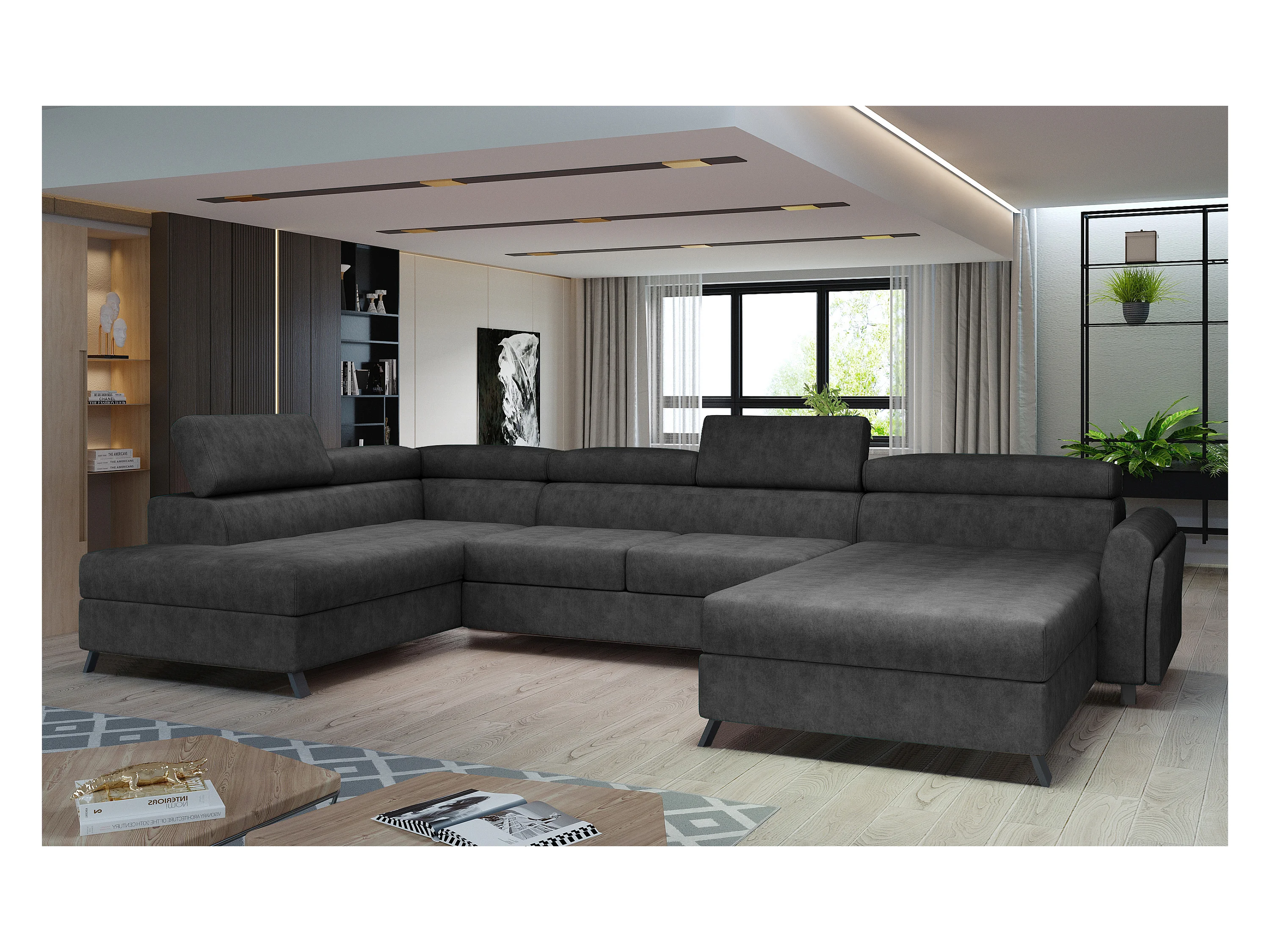 Grand canapé panoramique convertible tissu anthracite avec coffre Konba 370cm-Coffre de rangement à droite
