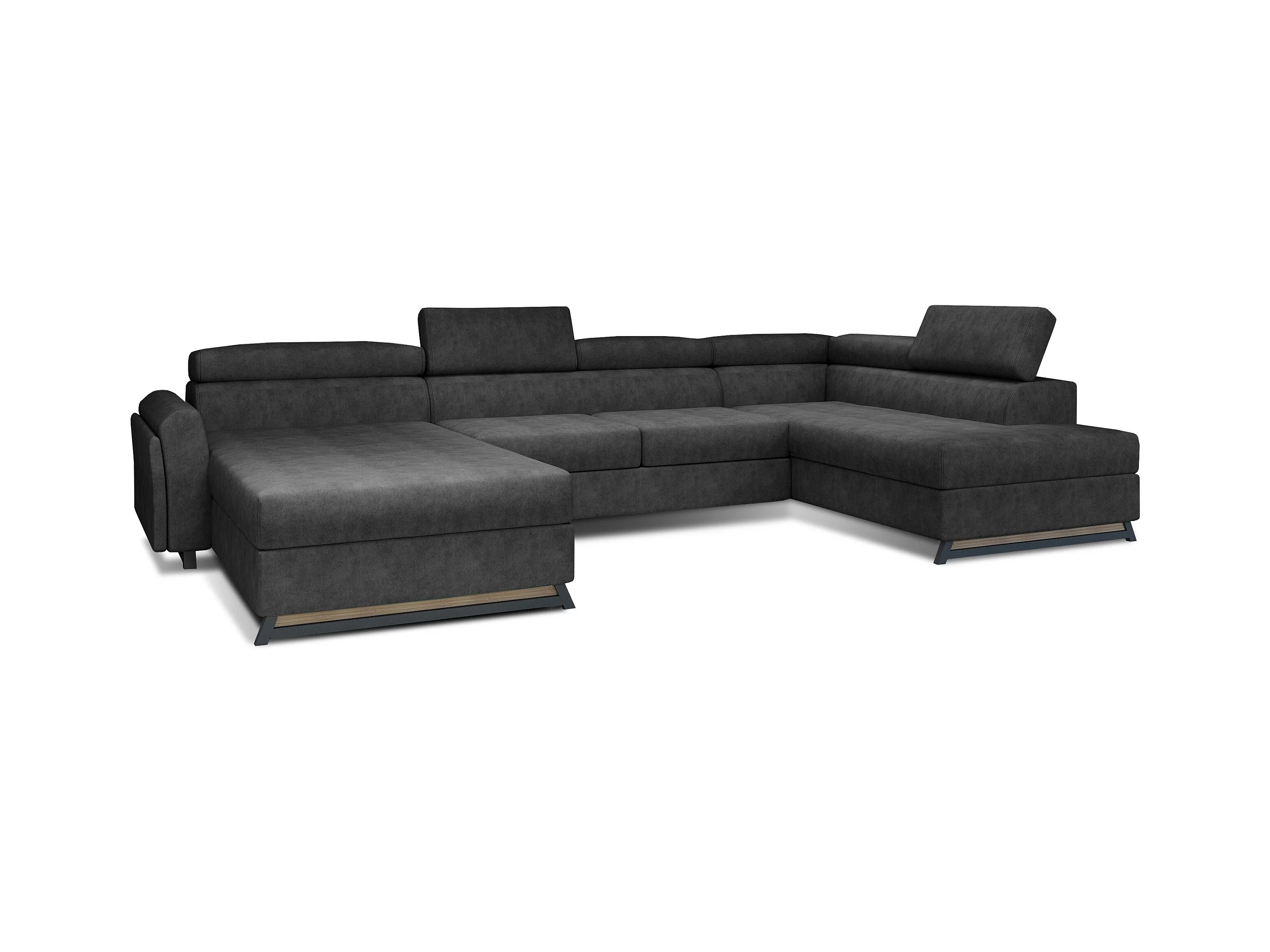 Grand canapé panoramique convertible velours anthracite avec coffre Konba 370cm-Coffre de rangement à gauche