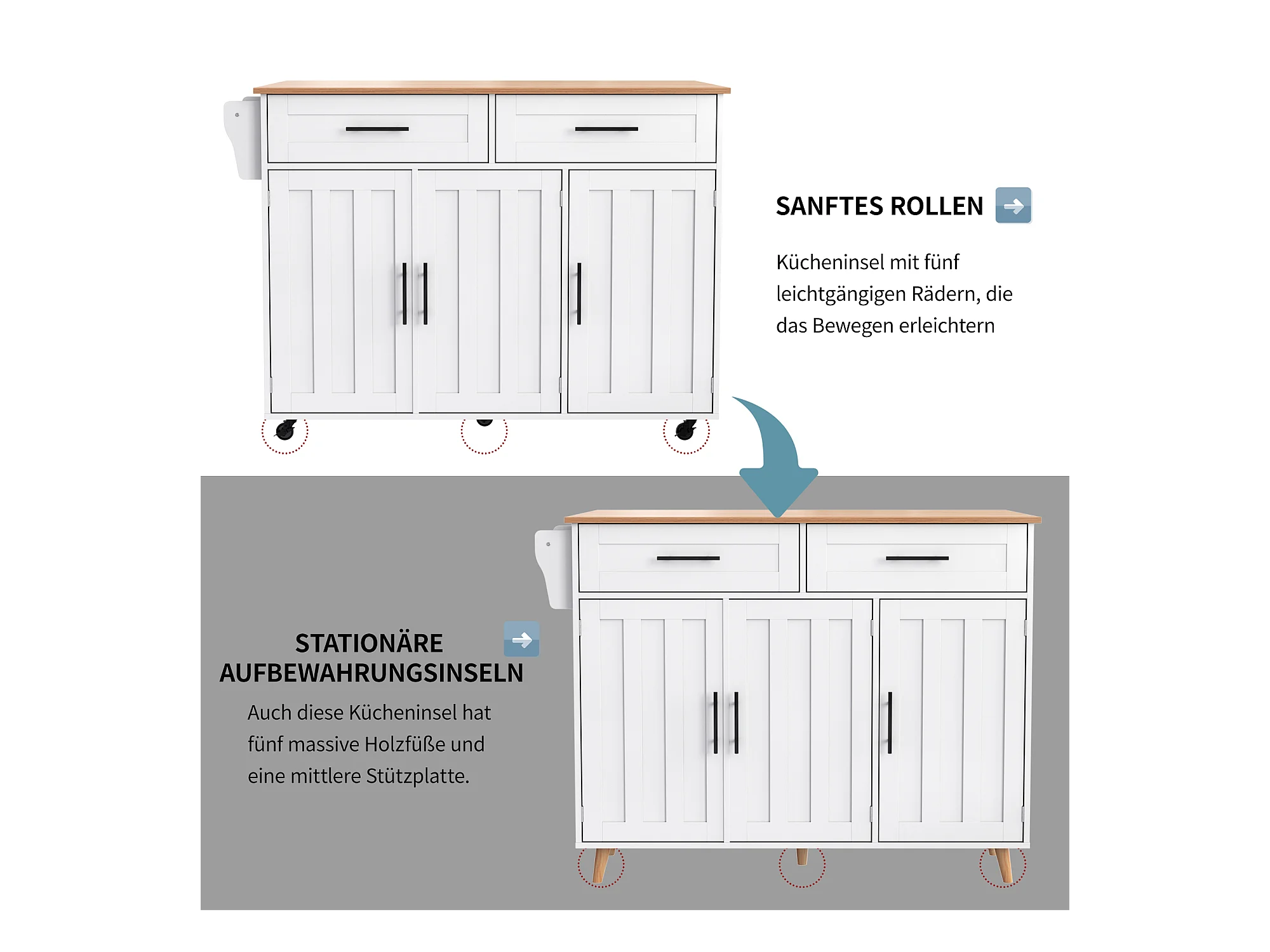 Desserte de Cuisine sur Roulettes Îlot de Cuisine Buffet avec Plan de Travail, FKW117-W