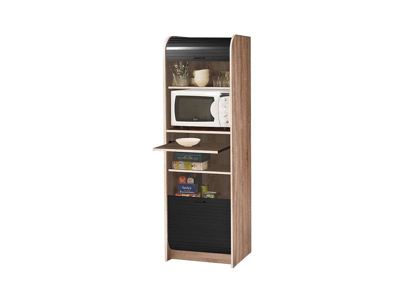 Grand meuble colonne de cuisine micro onde bois clair et noir Nantes