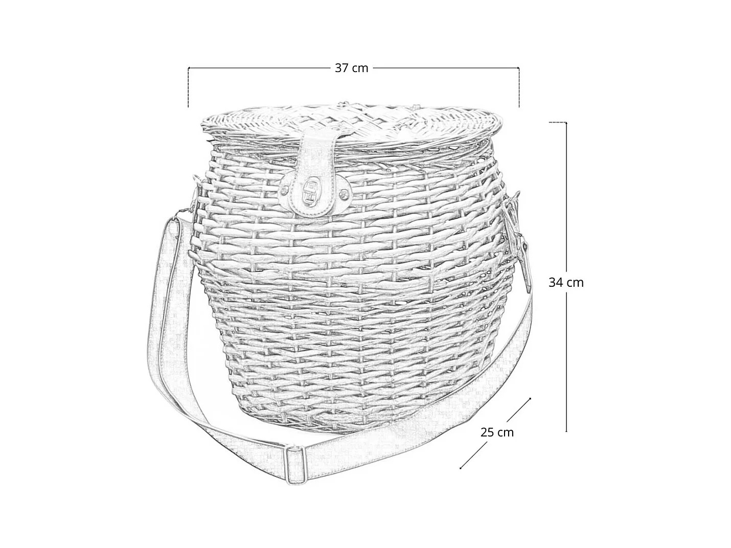 Grand panier à champignons ovale en osier avec couvercle et bandoulière 37 x 25 x h 34 cm