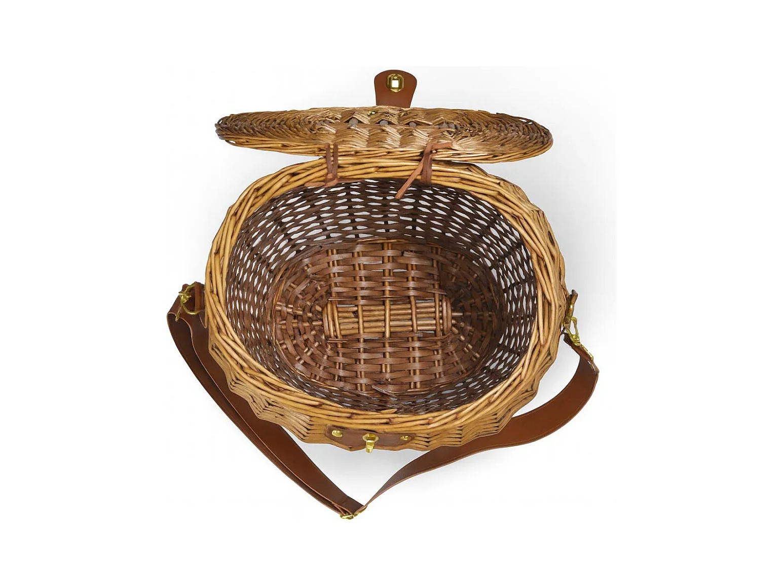Petit panier à champignons ovale en osier avec bandoulière et ouverture dans le couvercle 36x21x30