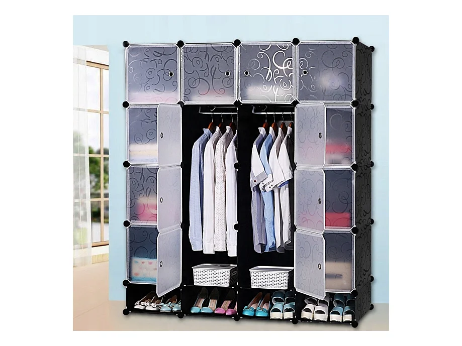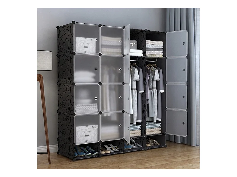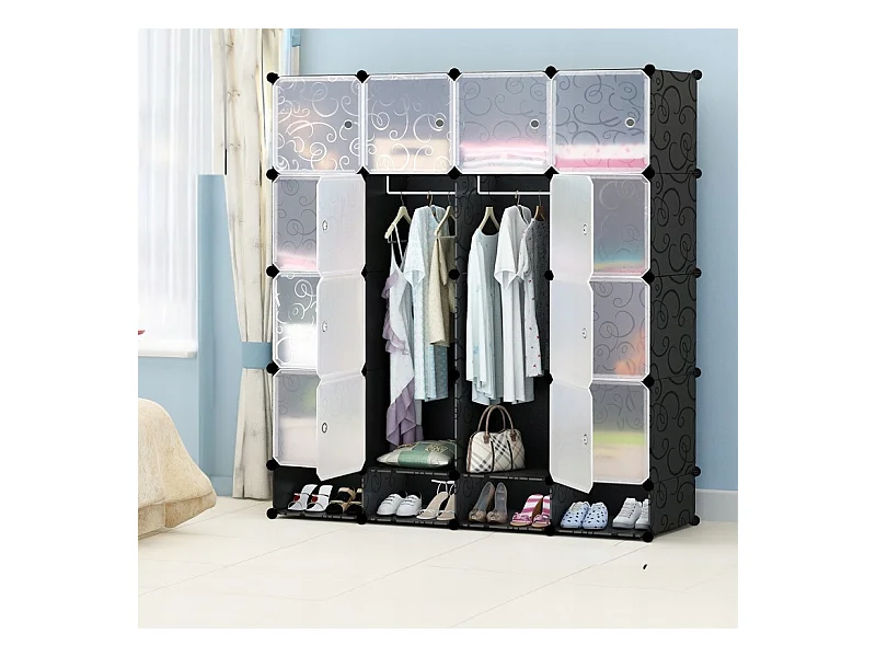Grande armoire modulaire étagère penderie xxl noir haute capacitive