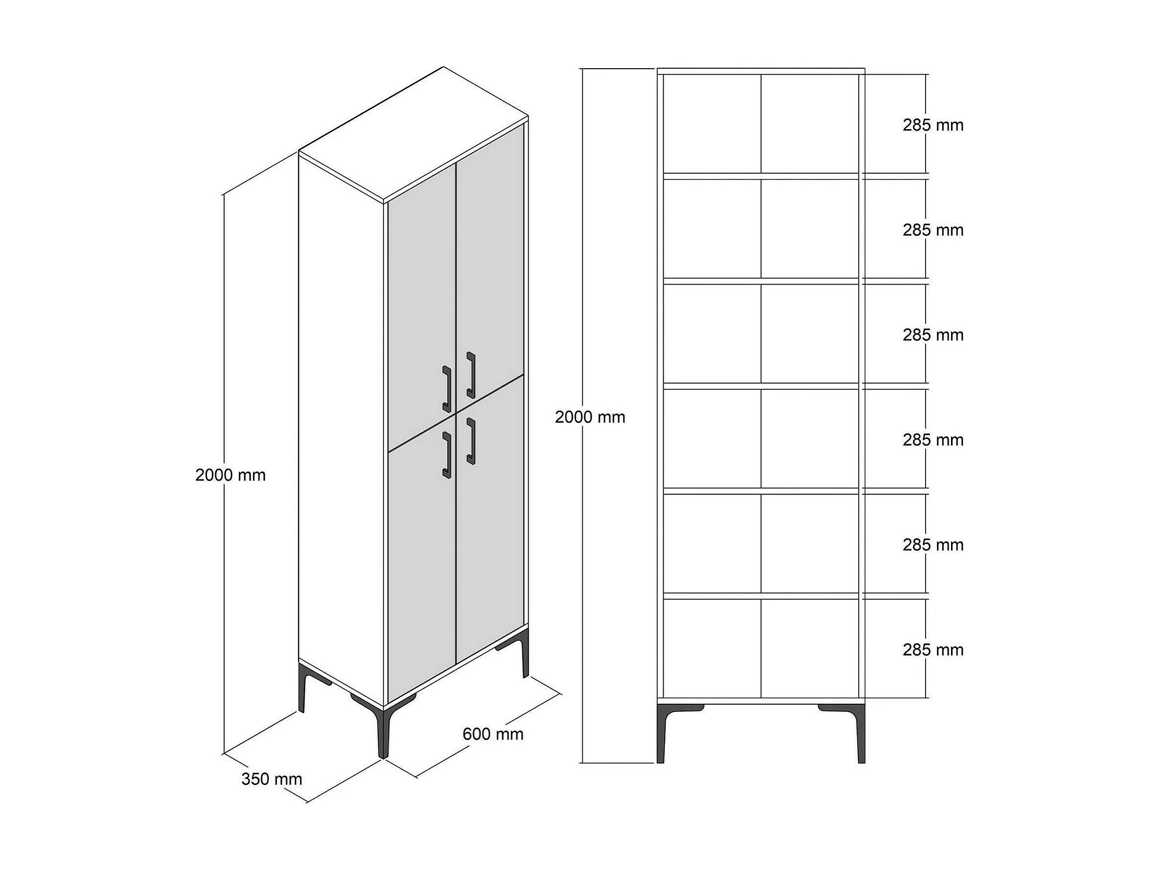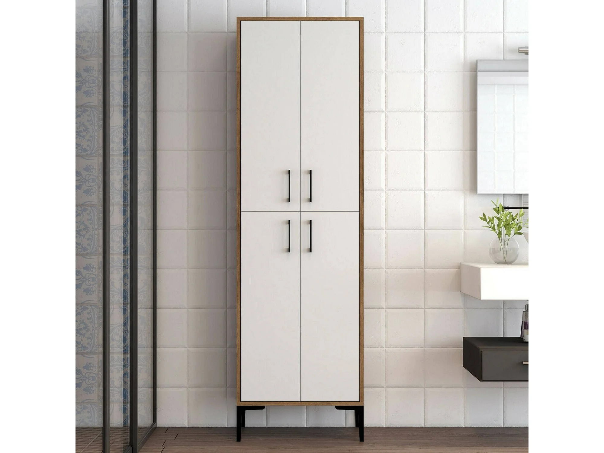 Grande armoire polyvalente Denipot, Meubles multifonctionnels, Casier à chaussures, Support à chaussures pour armoire, 60x35h200 cm, Noyer et Blanc