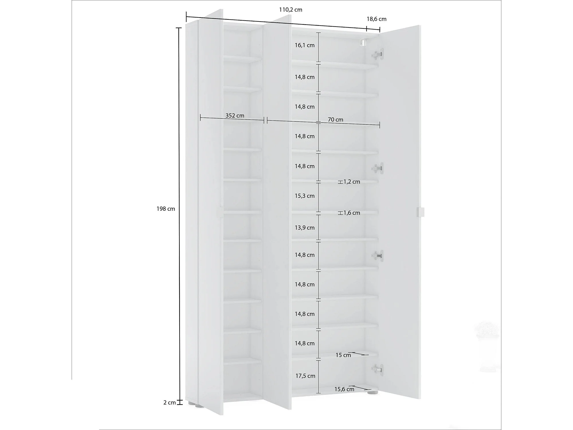 Grande armoire polyvalente Dfoscarin, Meubles multifonctionnels, Casier à chaussures, Support à chaussures pour armoire, Made in Italy, 11x19h200 cm, Blanc brillant
