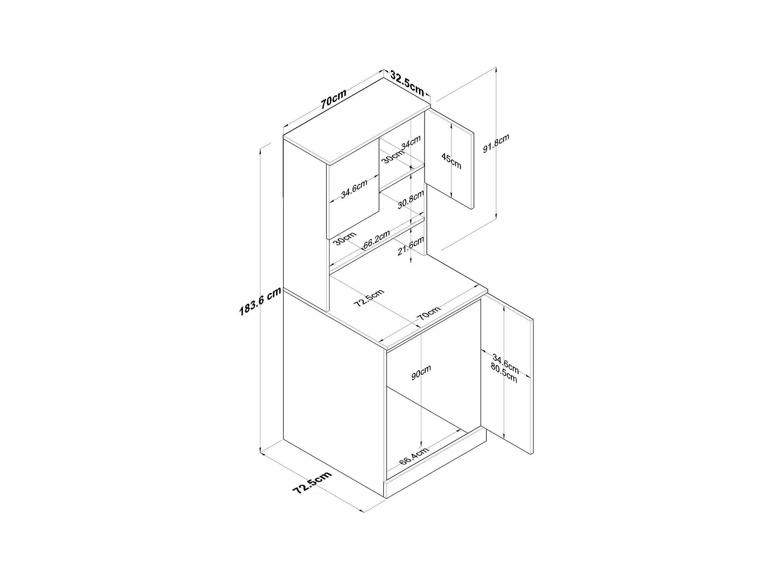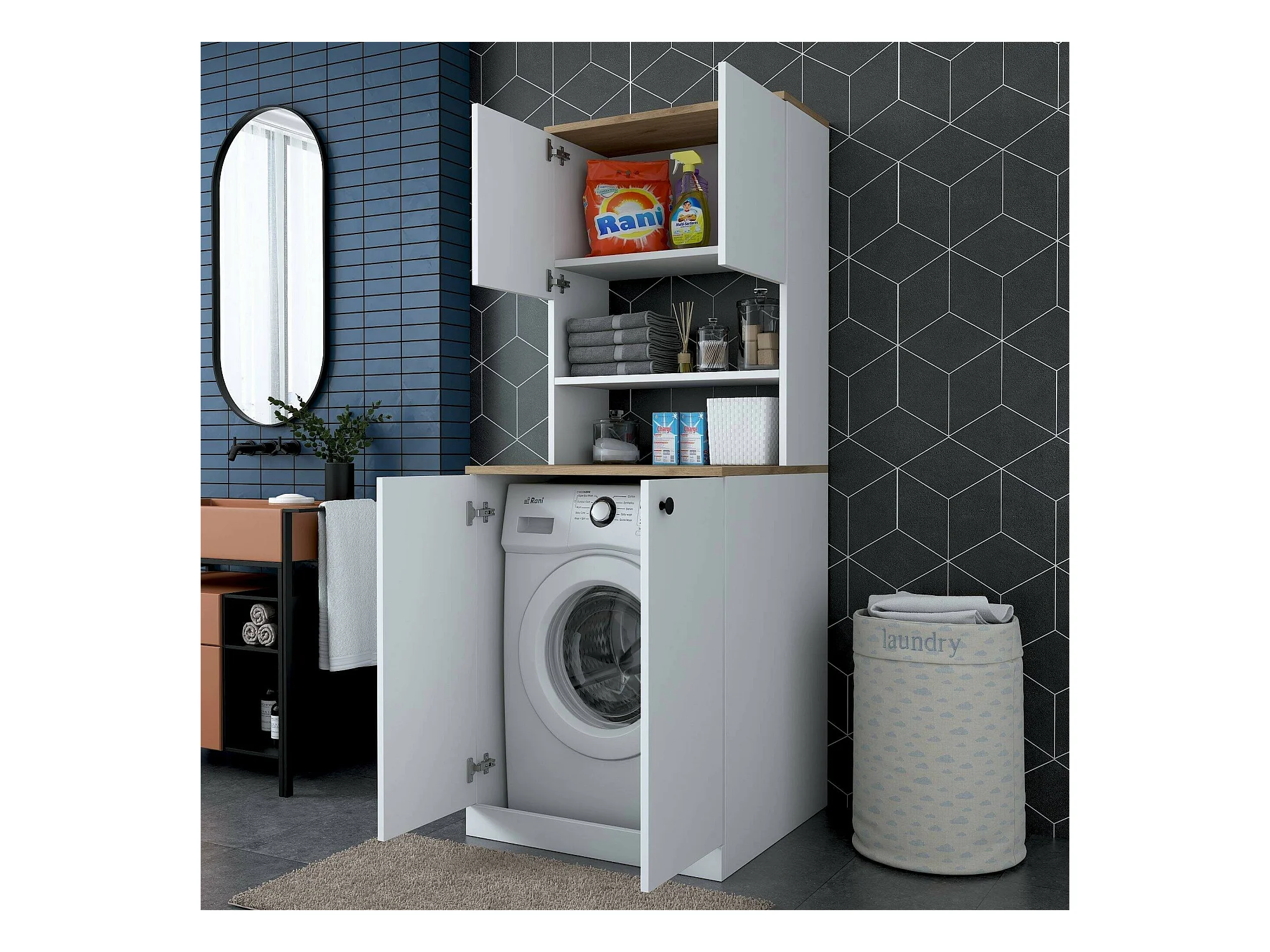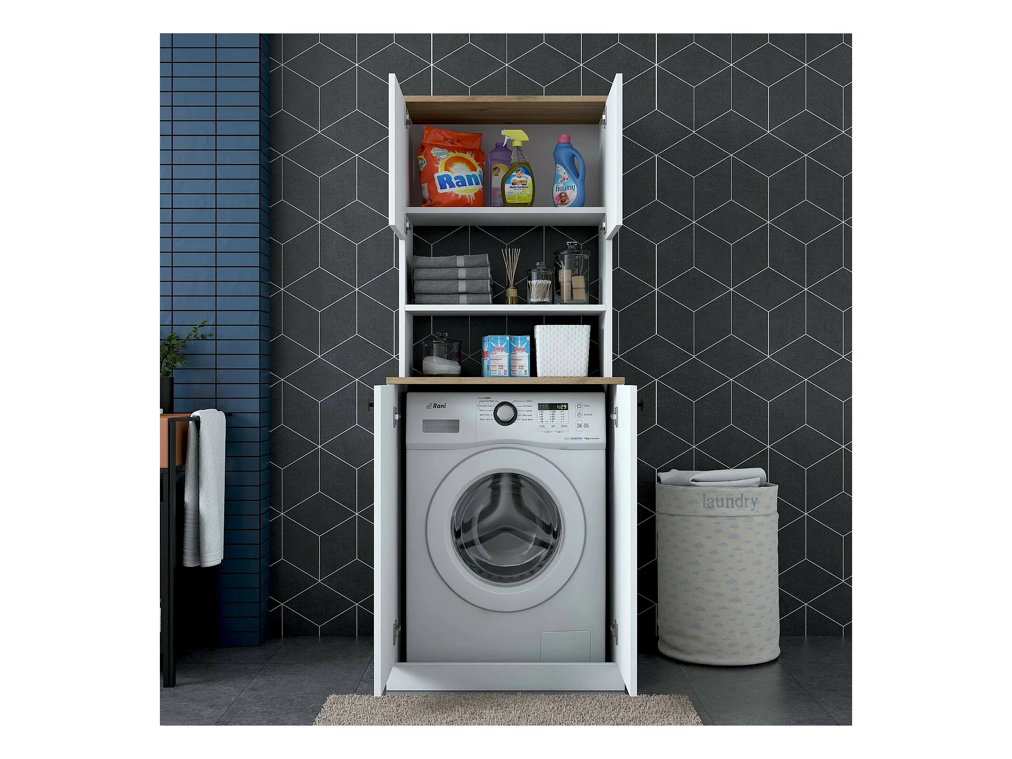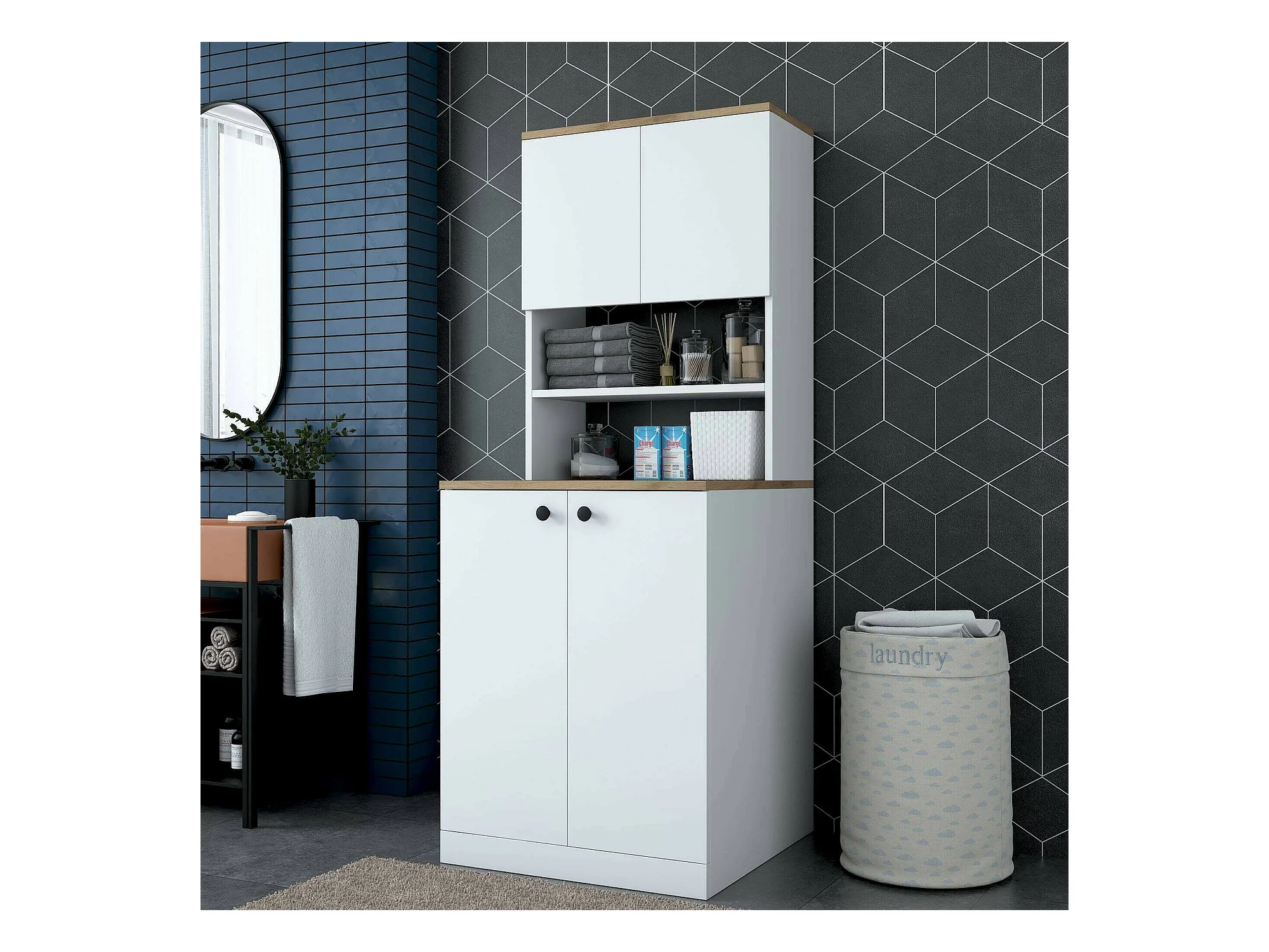 Grande armoire polyvalente Dmaifred, Meubles multifonctionnels, Casier à chaussures, Support à chaussures pour armoire, 70x73h184 cm, Blanc et Noyer