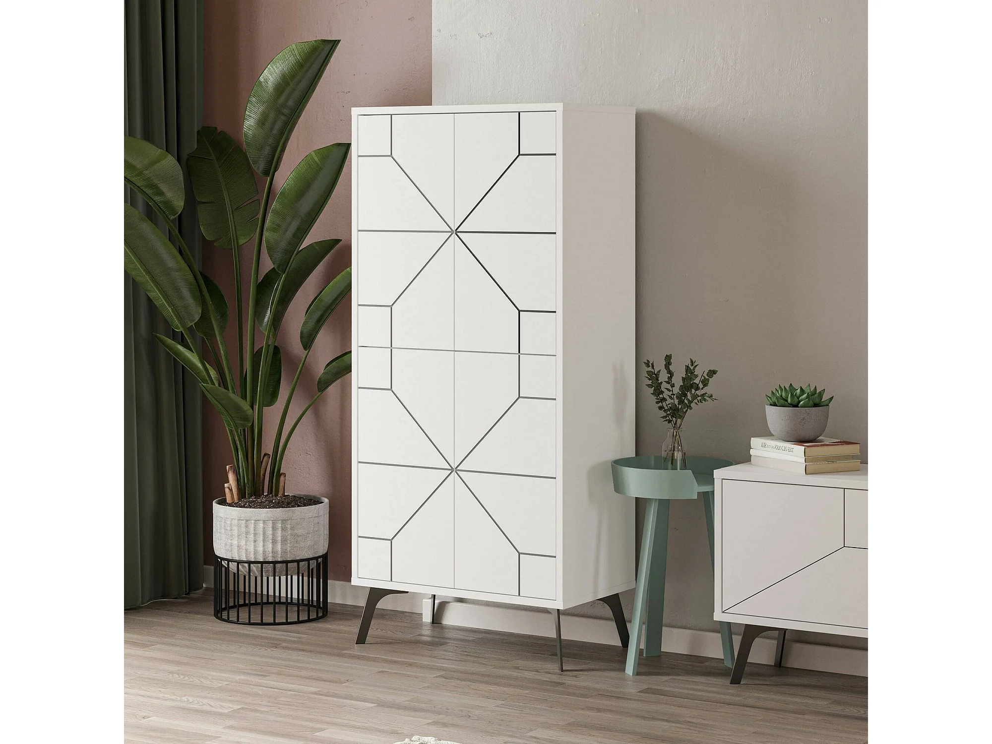Grande armoire polyvalente Dpari, Meubles multifonctionnels, Casier à chaussures, Support à chaussures pour armoire, 63x36 h136 cm, Blanc