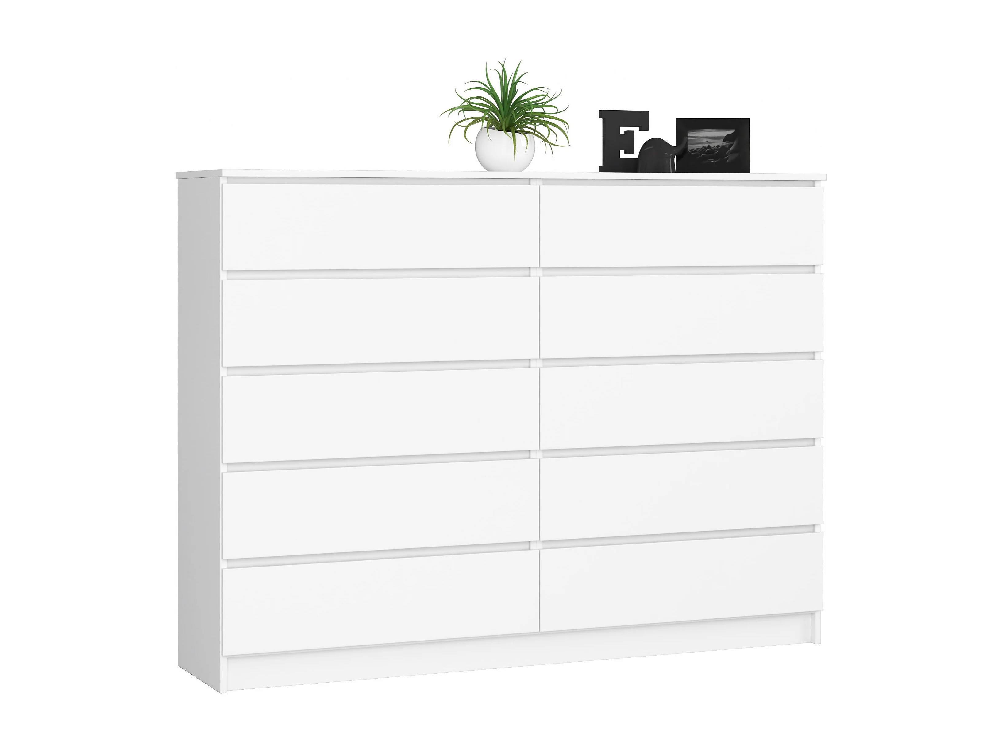 Grande Commode pour le salon AKORD K160 Blanche 160 cm 10 tiroirs façade Blanche 160x40x121 cm