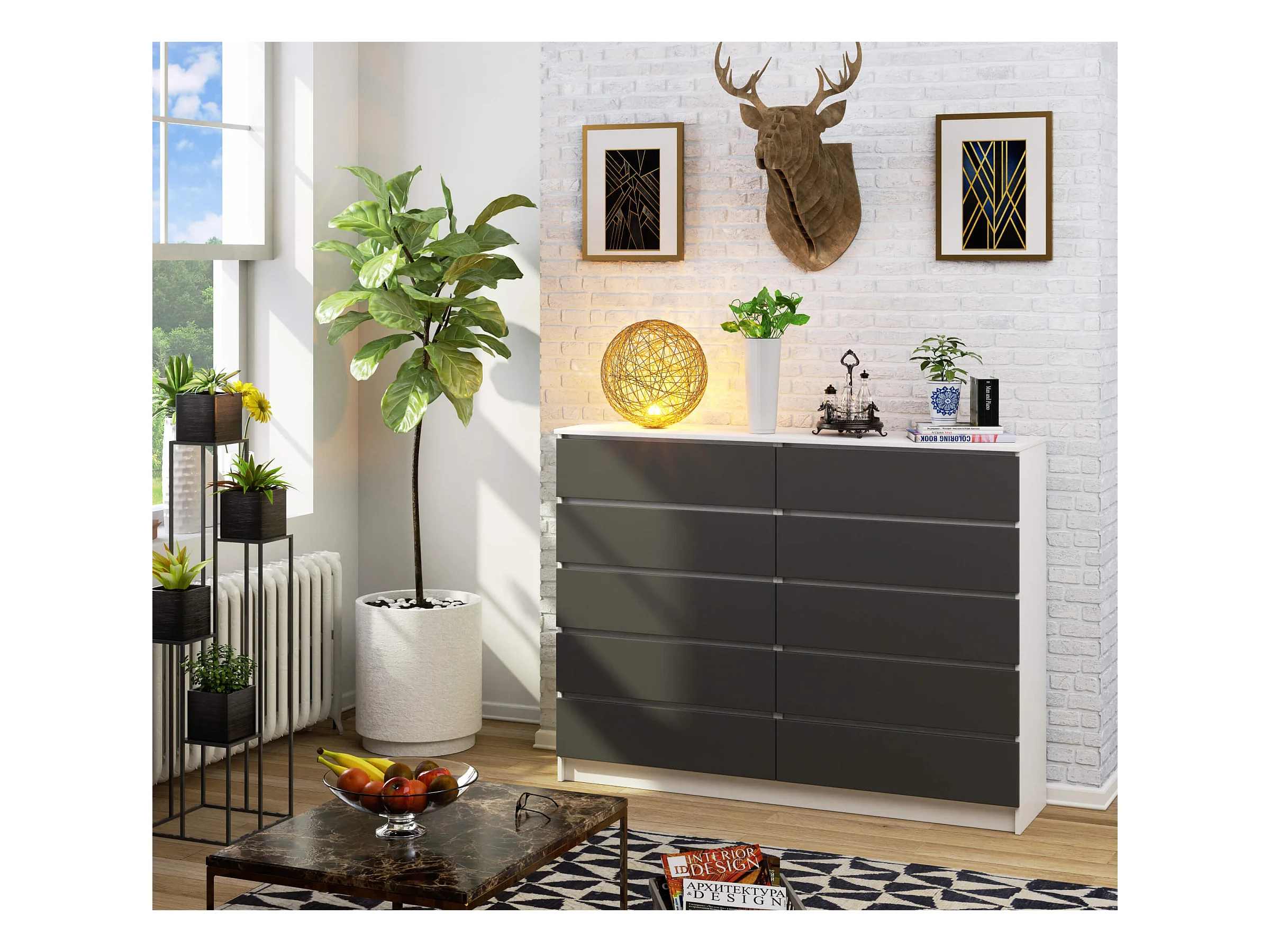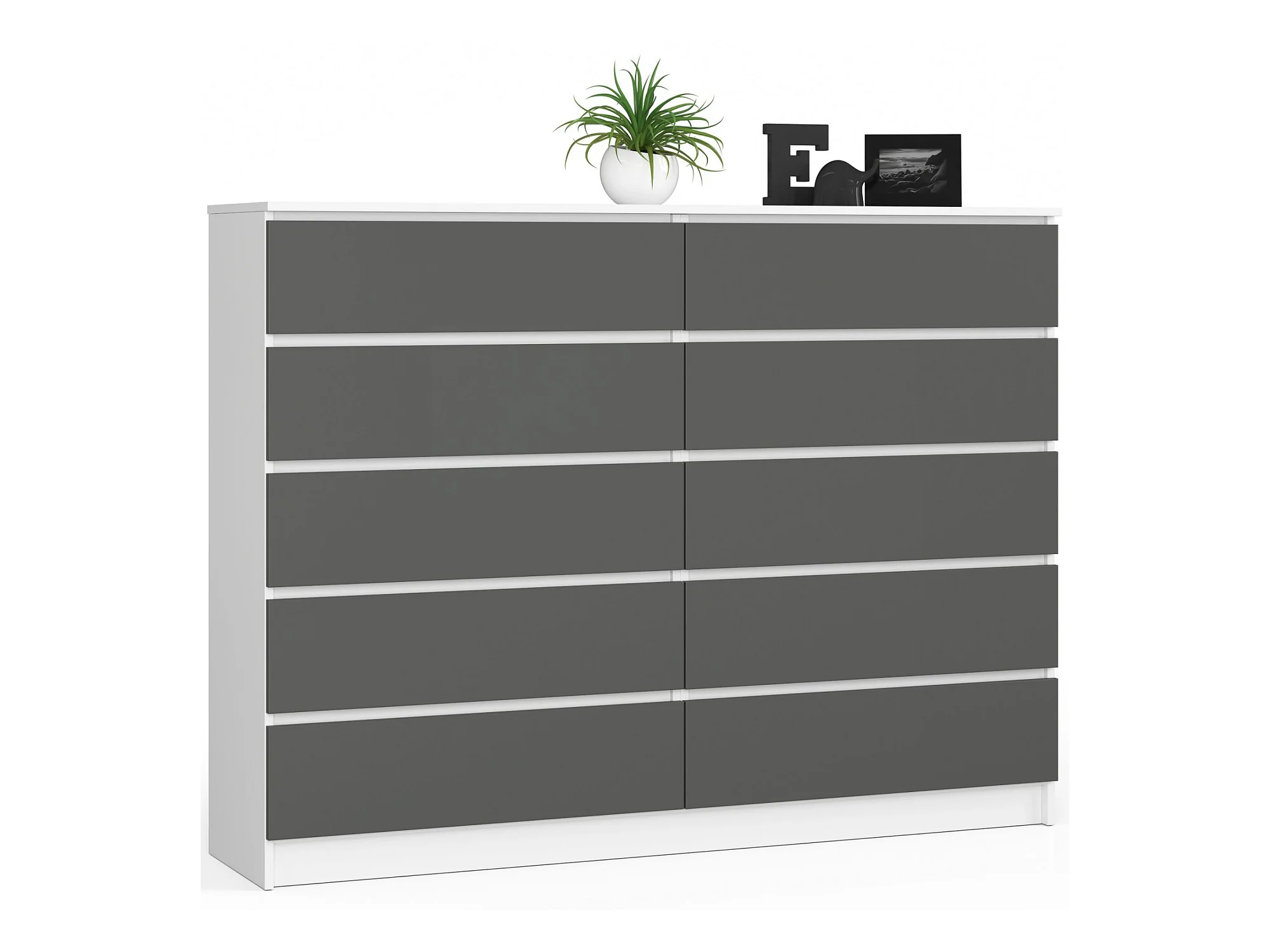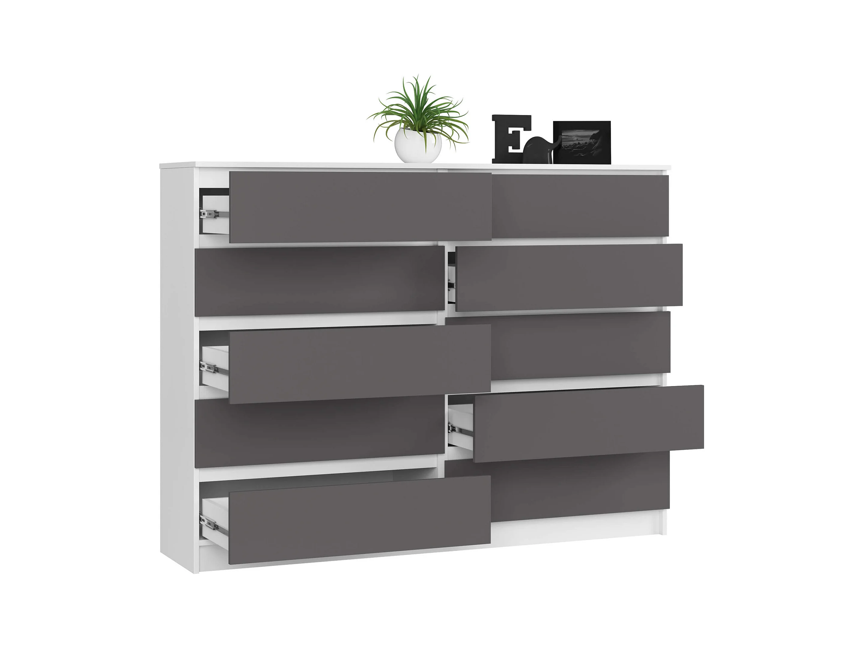 Grande Commode pour le salon AKORD K160 Blanche 160 cm 10 tiroirs façade Gris Graphite 160x40x121 cm