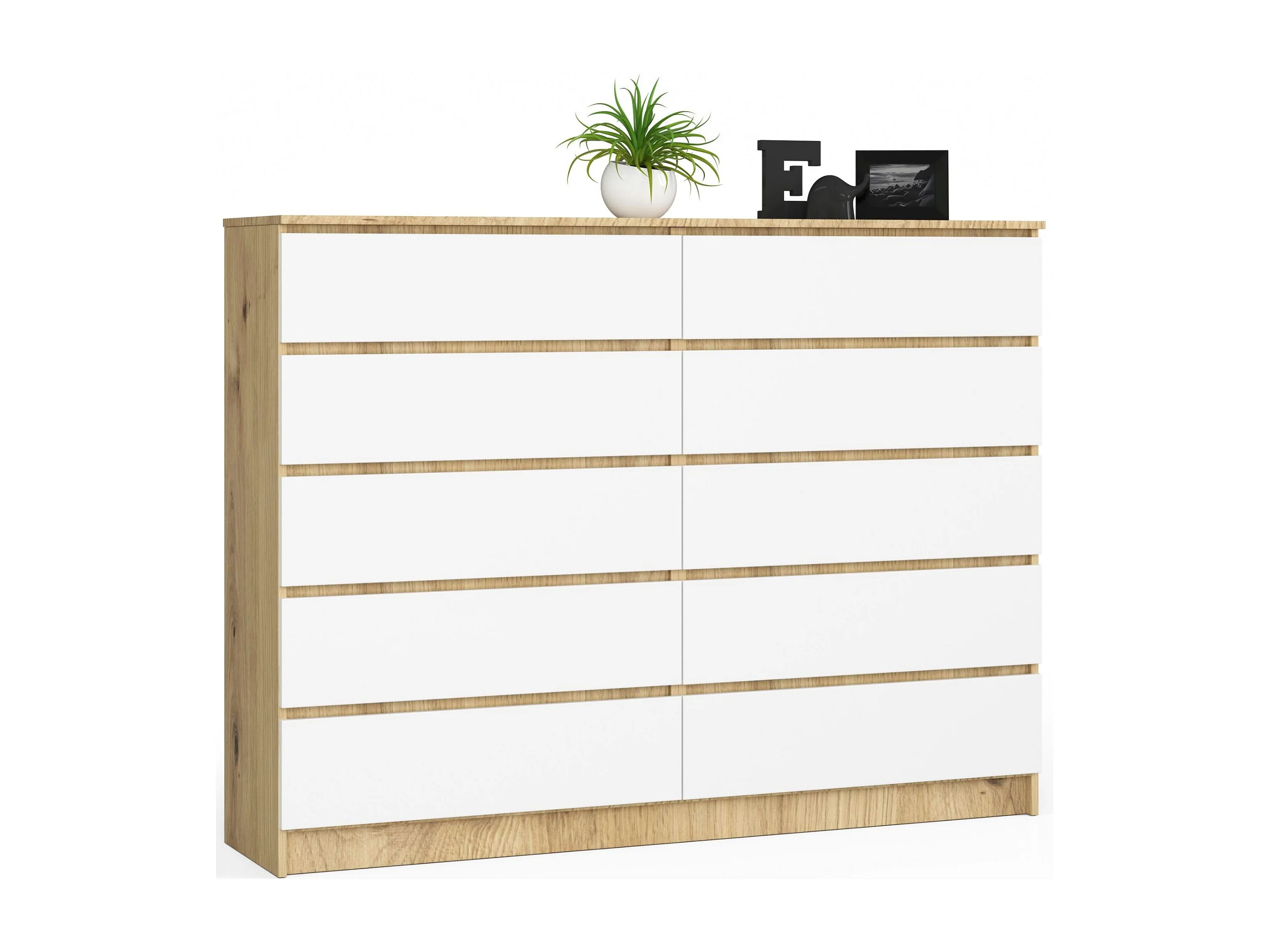 Grande Commode pour le salon AKORD K160 Chêne Artisan 160 cm 10 tiroirs façade Blanche 160x40x121 cm