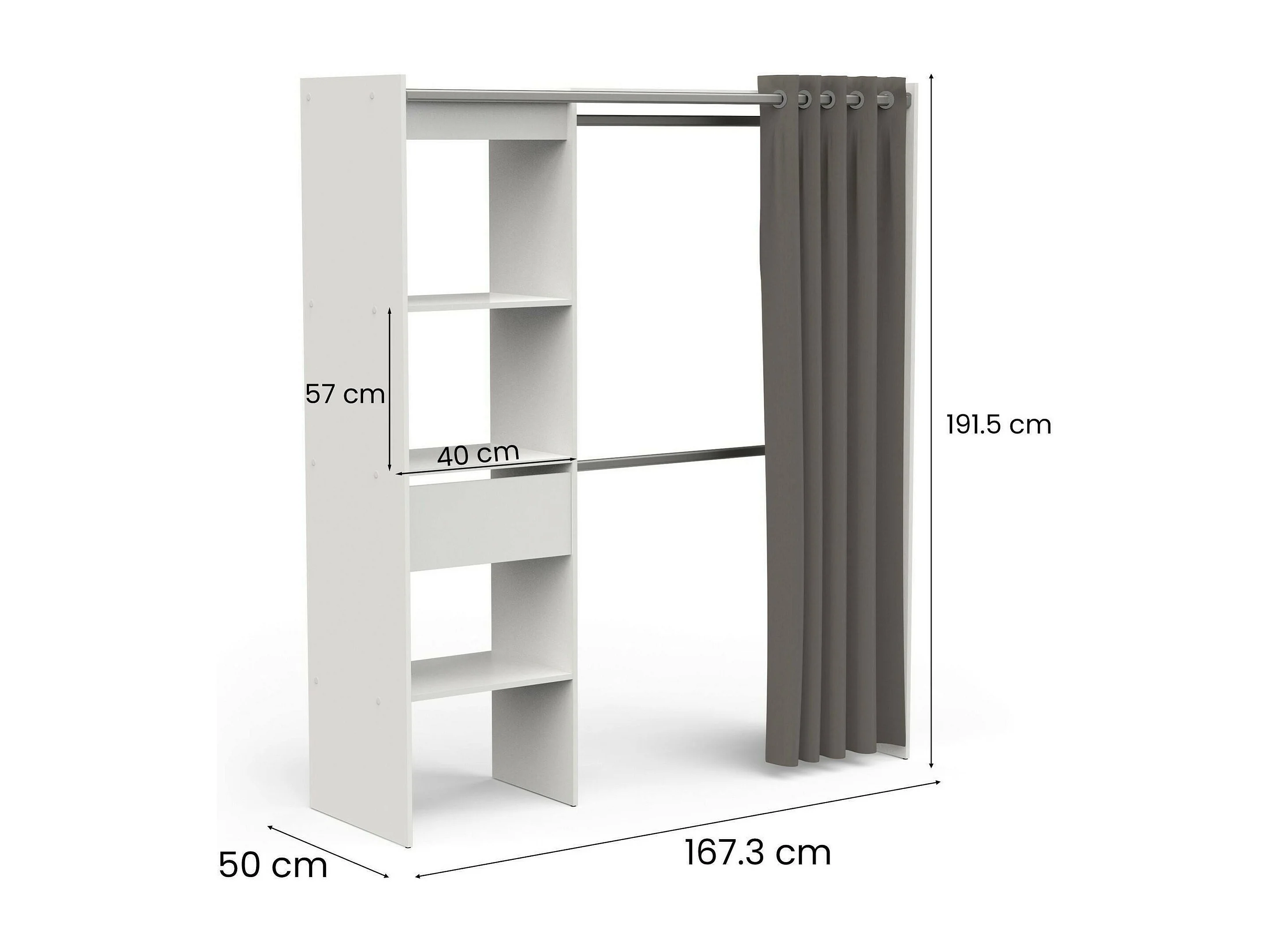 Grande Garde-robe Dcourtne, Meubles de chambre, Penderie de plain-pied, Placard à vêtements, 167x50 h192 cm, Blanc mat