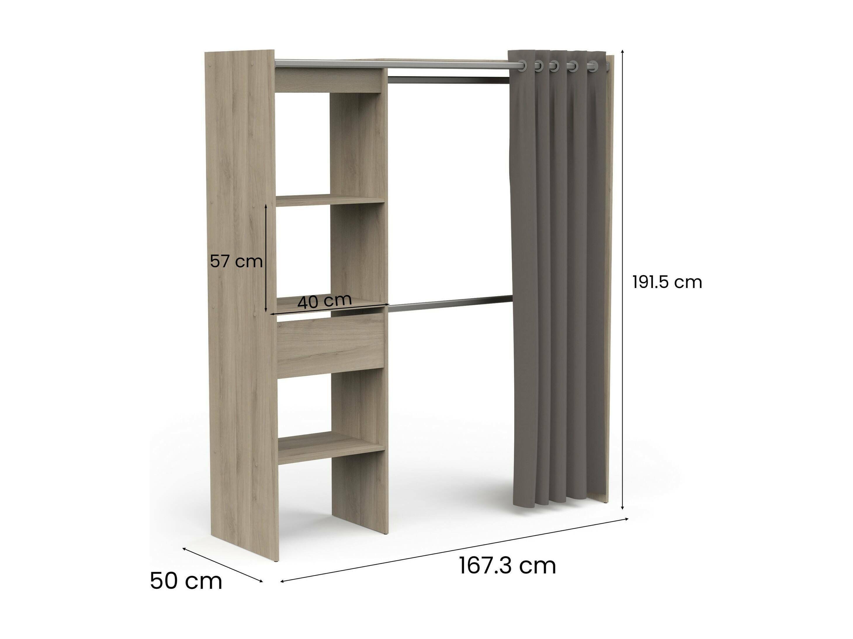 Grande Garde-robe Dpayn, Meubles de chambre, Penderie de plain-pied, Placard à vêtements, 119x50 h183 cm, Chêne clair