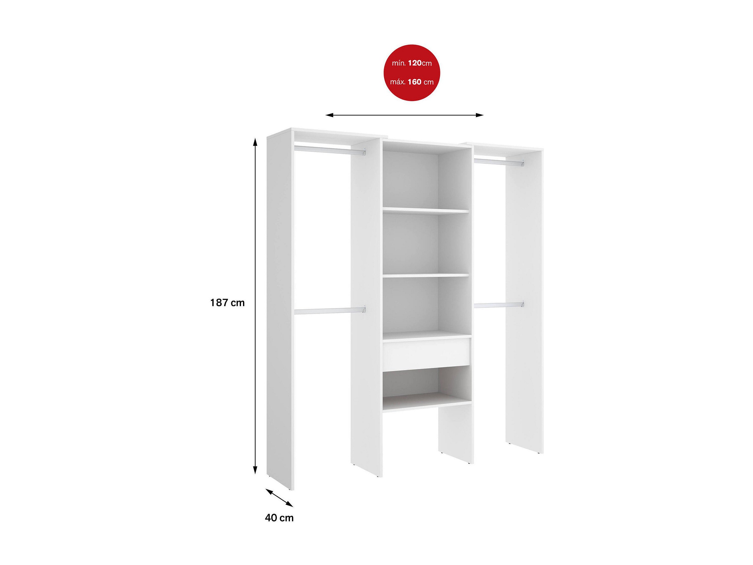 Grande Garde-robe Di, Meubles de chambre, Penderie de plain-pied, Placard à vêtements, 160x50 h185 cm, Blanc